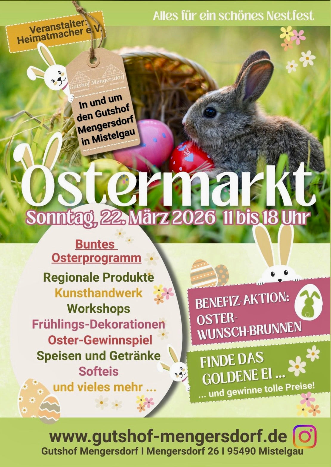 Am Sonntag, 22. März 2026 verwandelt sich der Gutshof in einen bunten, frühlingshaften Ostermarkt mit regionalen Produkten, kreativen Ideen, Kunsthandwerk und allem, was Freude auf das Osterfest macht.