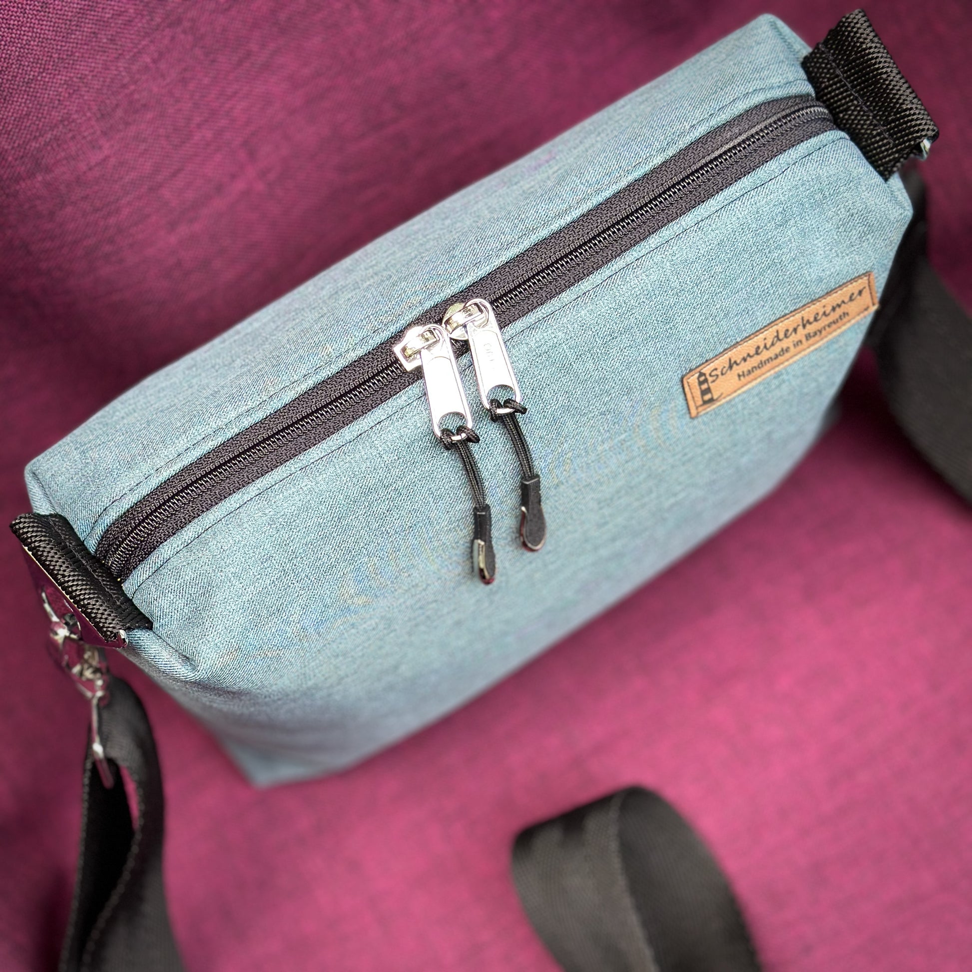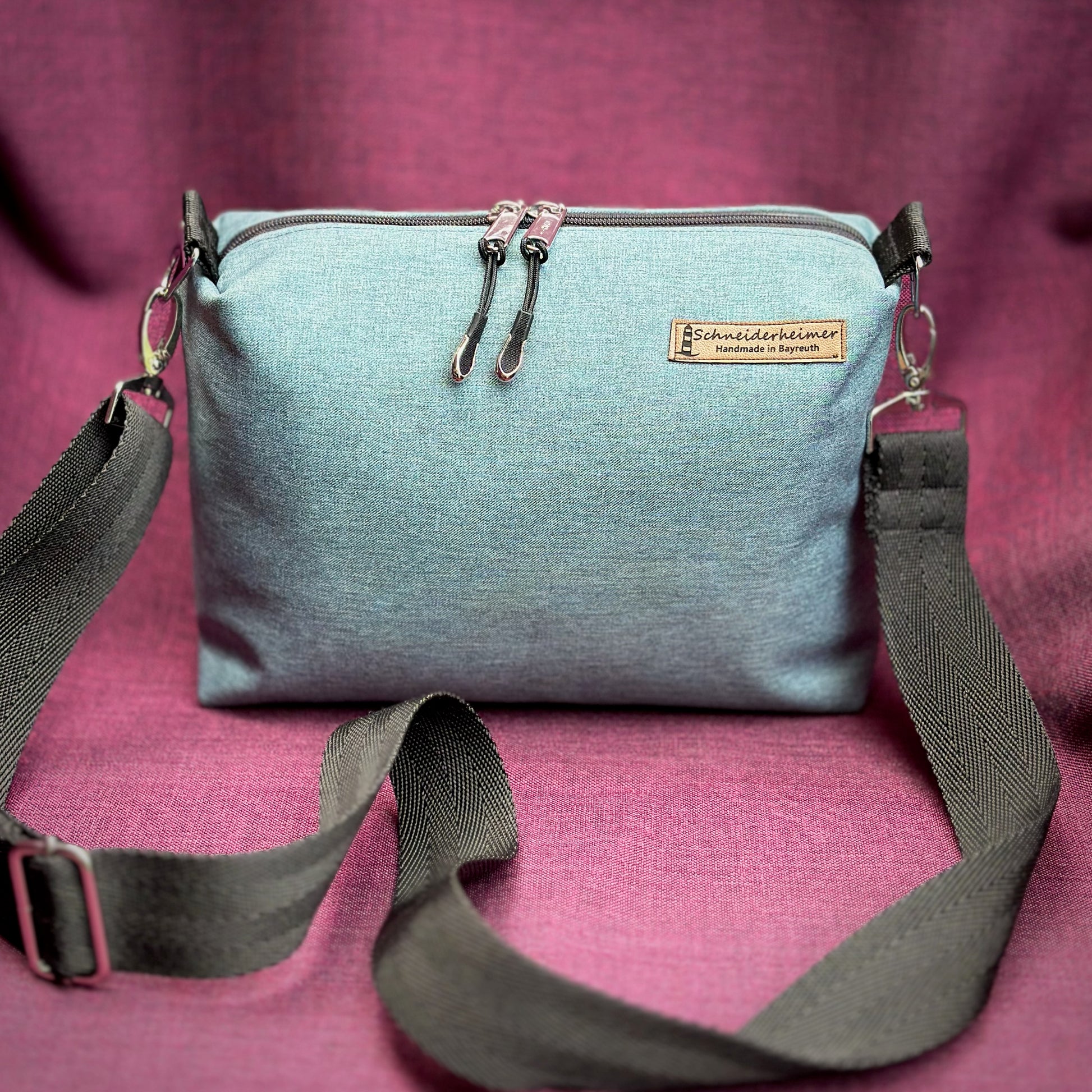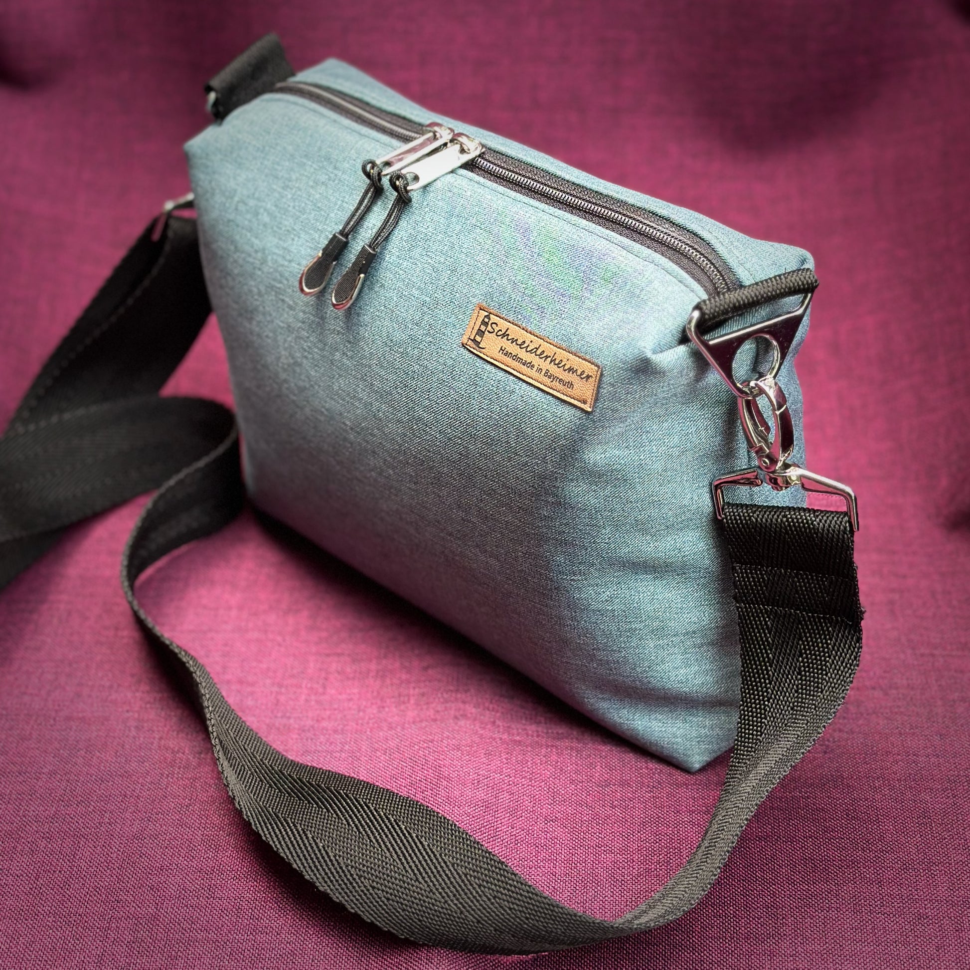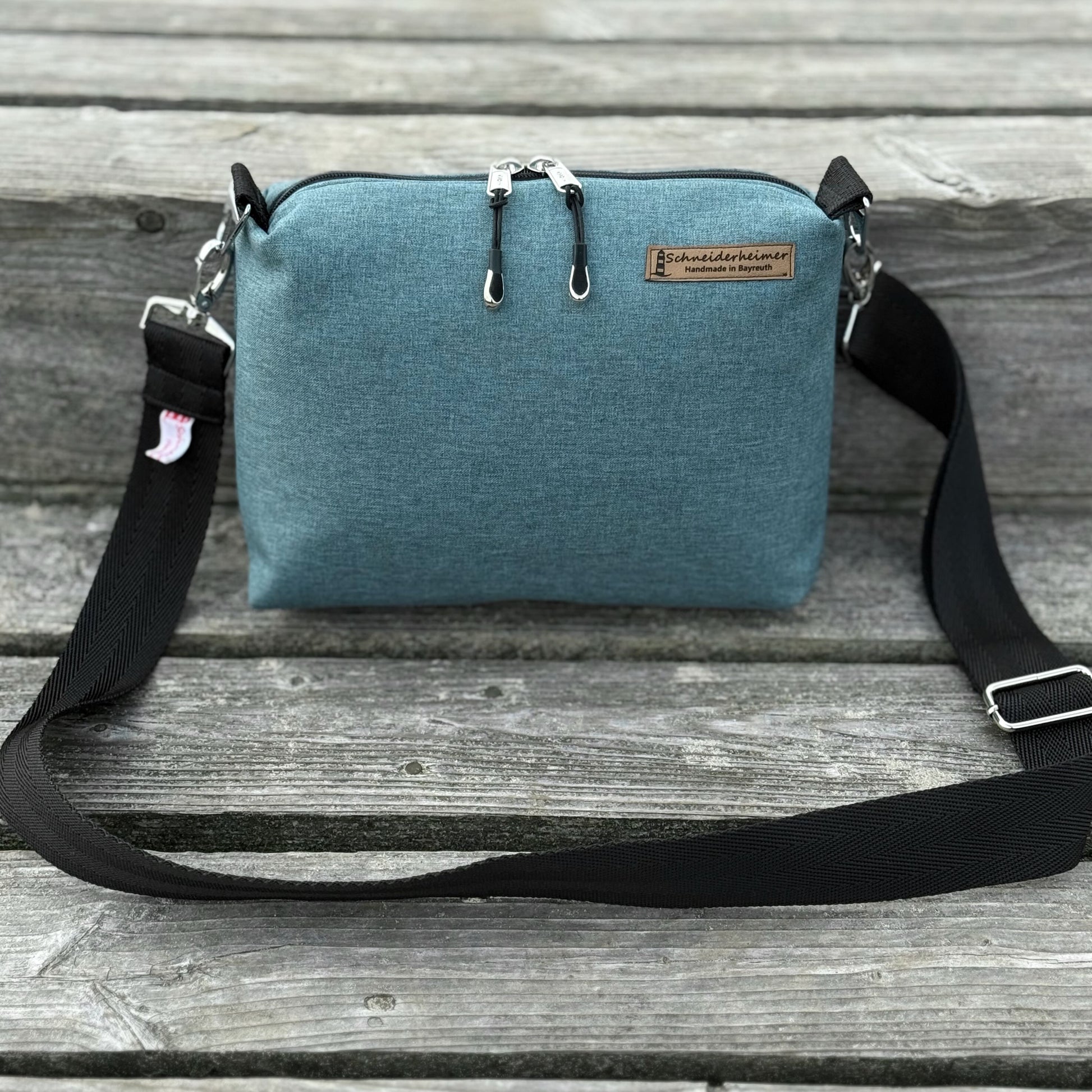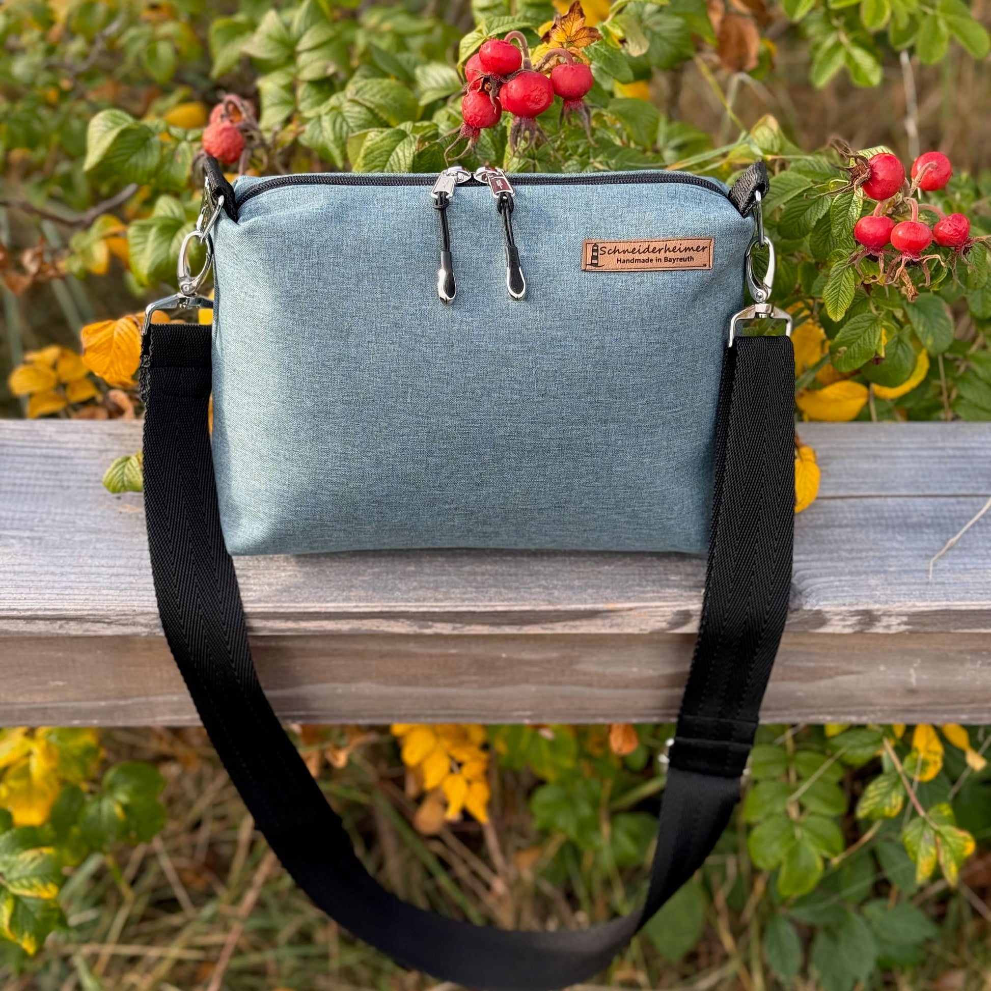 Die kleine Umhängetasche "Leni" in Softshell ist ein allwettertauglicher Begleiter rund ums Jahr.