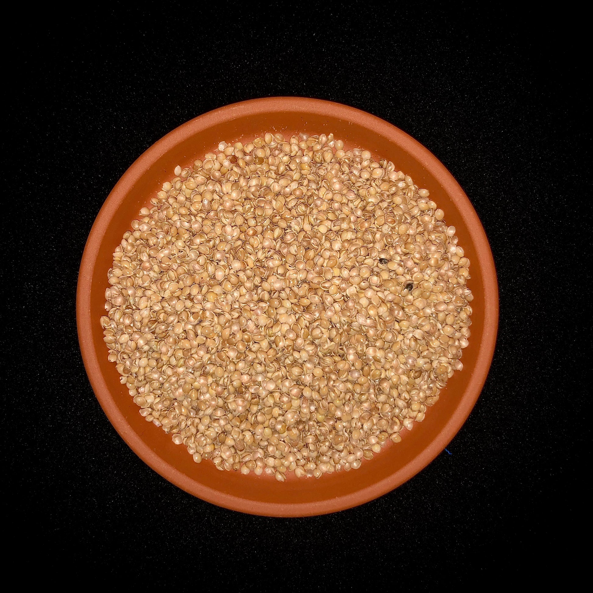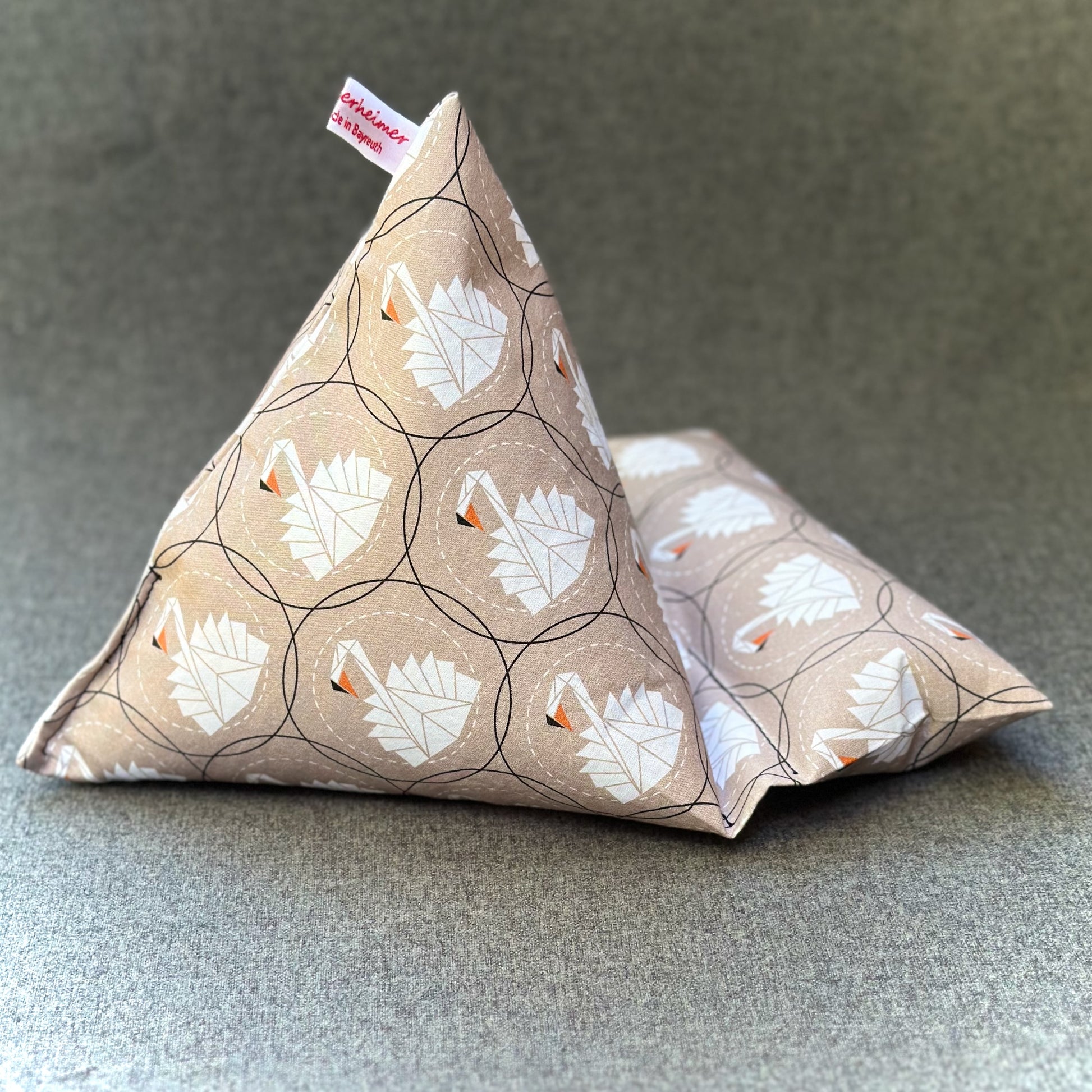 Als Naturfüllung für das Dreieckskissen verwenden wir anpassungsfähigem feinen Hirsespelz vom regionalen Lieferanten.