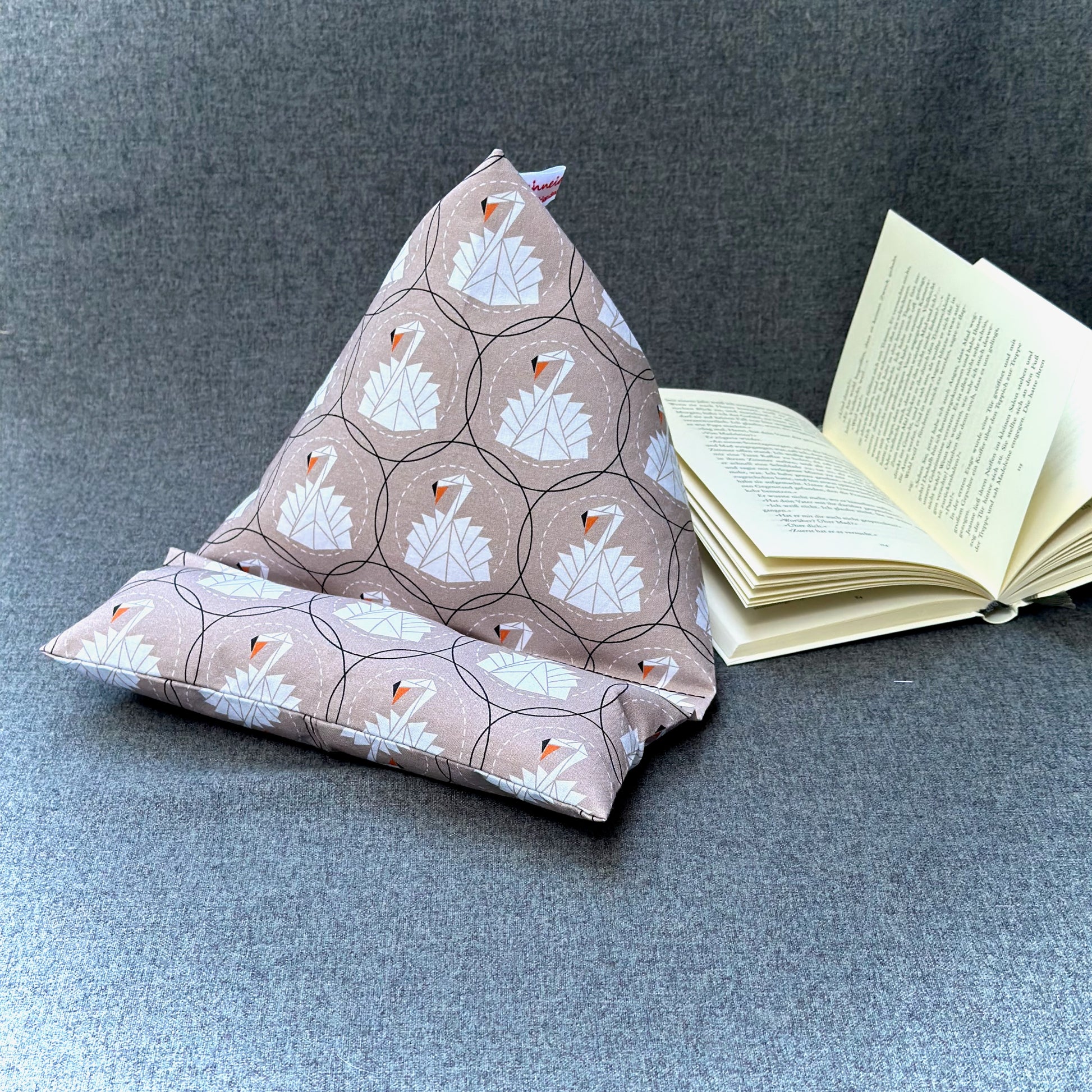 Als Stütze für Taschenbuch oder Ebook-Reader oder auch als Lesekissen für unterwegs ist er ein praktischer Helfer und eine sinnvolle Geschenkidee für Bücherfreunde.