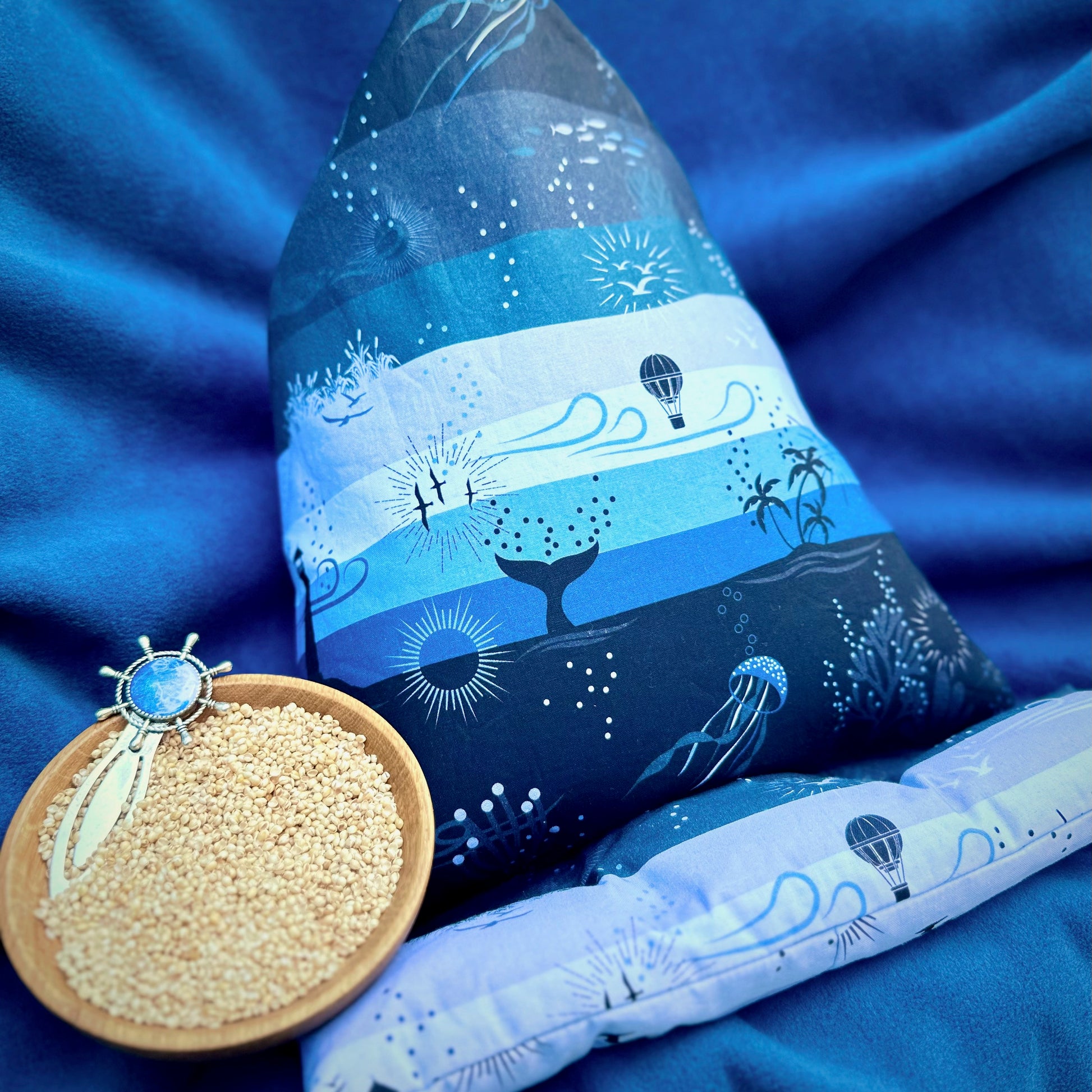 Das Kissen in der Dreiecksform ist mit einer Naturfüllung aus anpassungsfähigem feinem Hirsespelz vom regionalen Lieferanten ausgestattet.