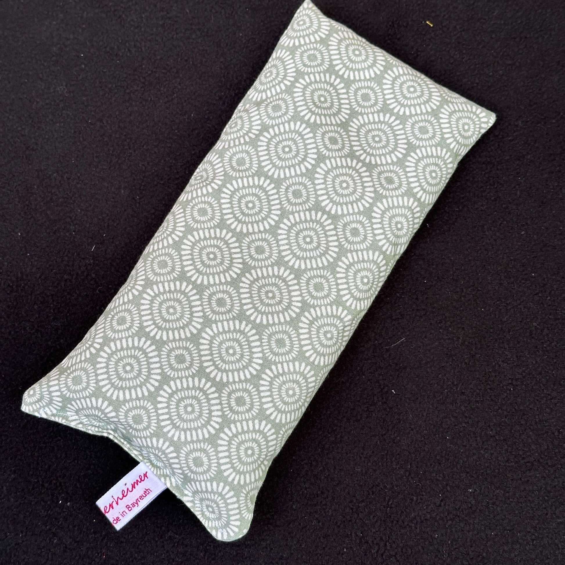 Das Rapskernkissen mit den Massen von ca. 22/10cm enthält ca. 300g Rapssamen.