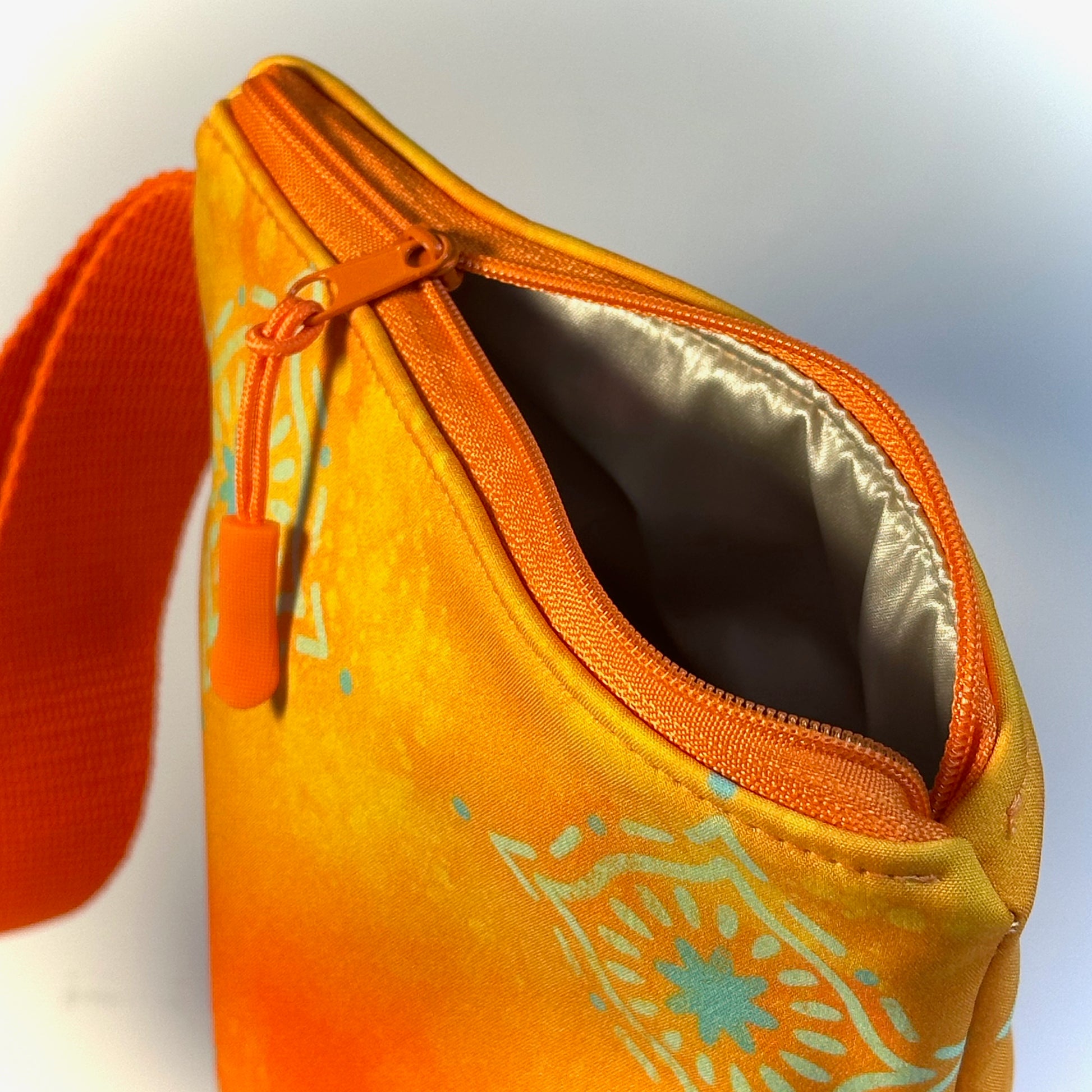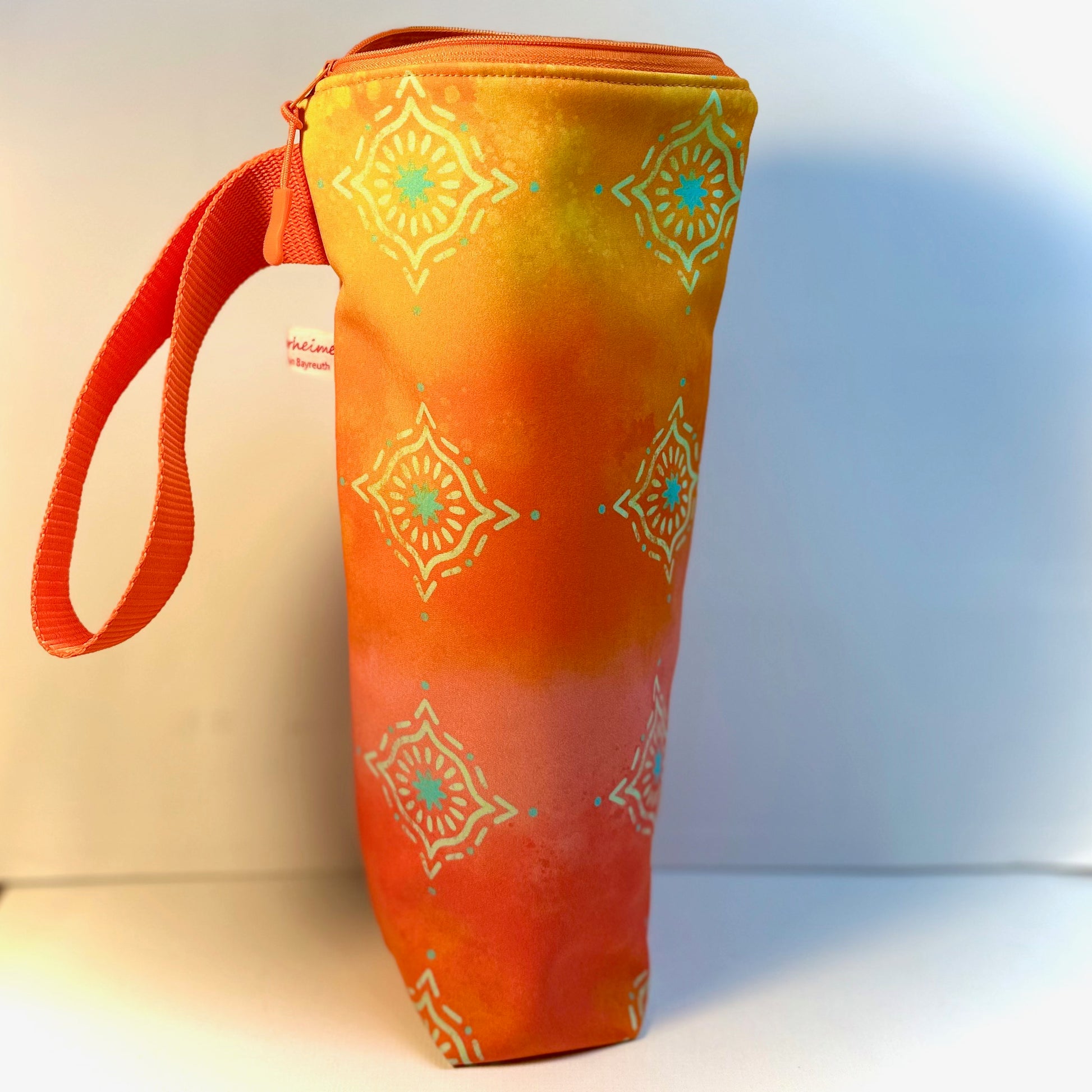 Unsere "Flaschentasche" in XL mit Trageschlaufe ist maßgeschneidert für handelsübliche Getränkeflaschen mit 0,75ml Inhalt. Auch ein Kühlakku findet noch Platz.