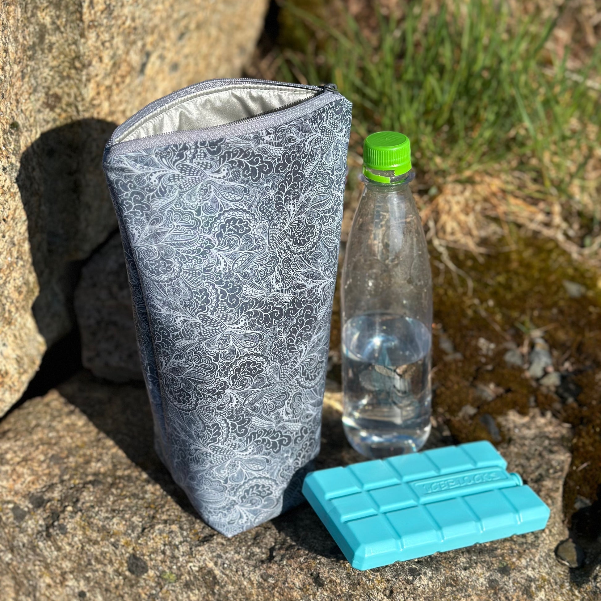 Die Thermo-Tasche für die Flasche sorgt für kühle Getränke, wenn die Temperaturen steigen.