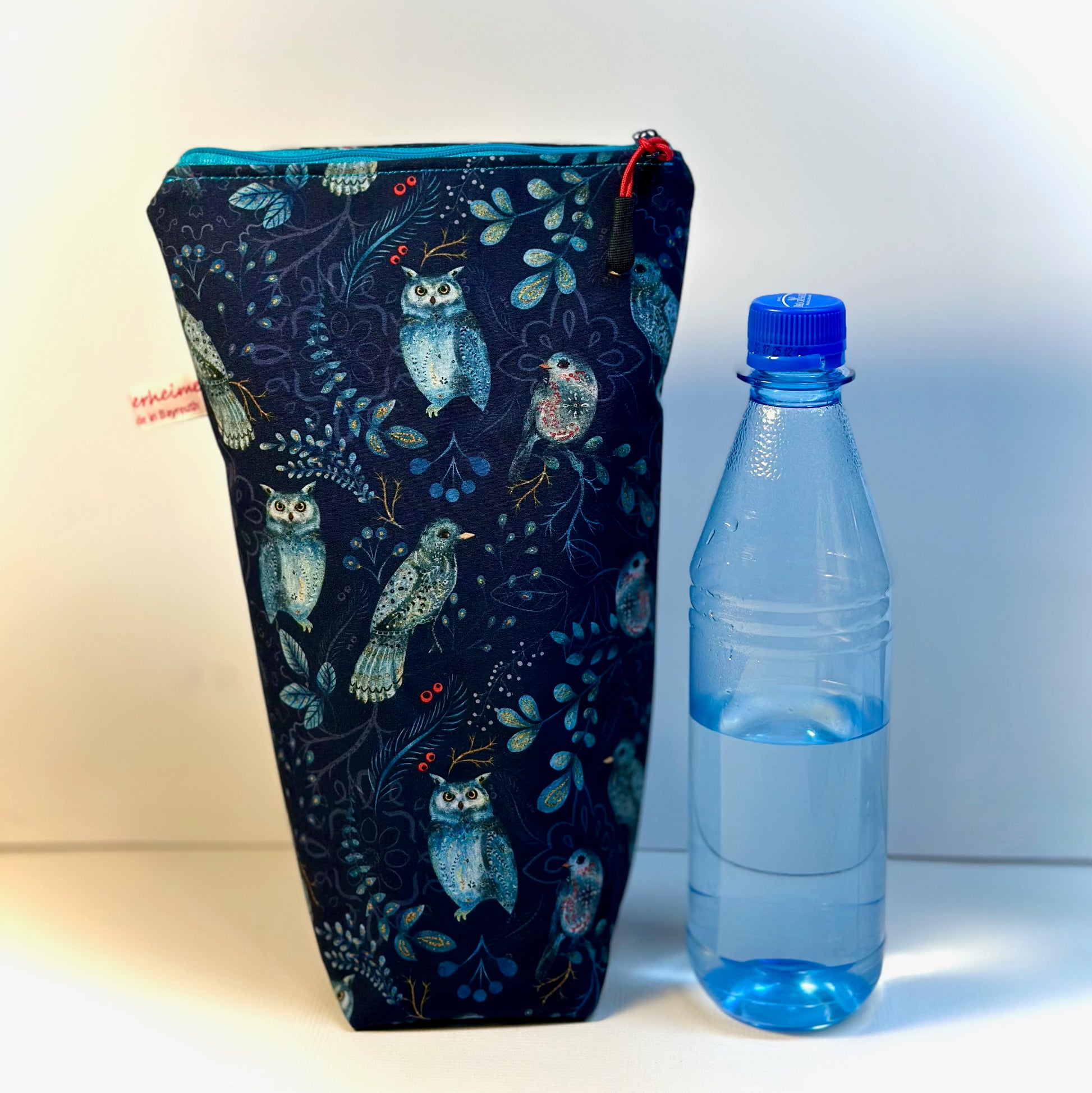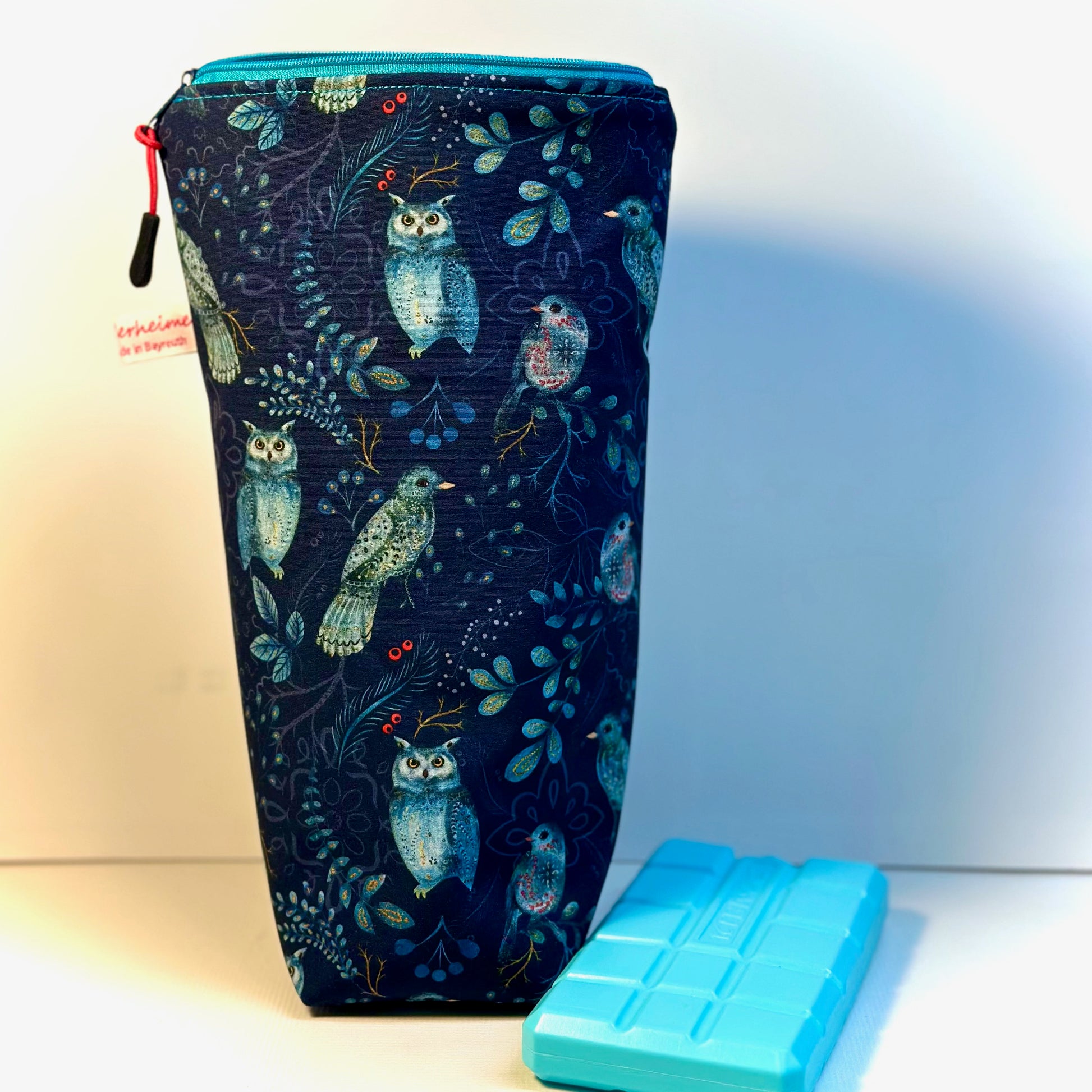 Unsere "Flaschentasche" ist maßgeschneidert für handelsübliche Getränkeflaschen mit 0,5ml Inhalt. Auch ein Kühlakku findet noch Platz.