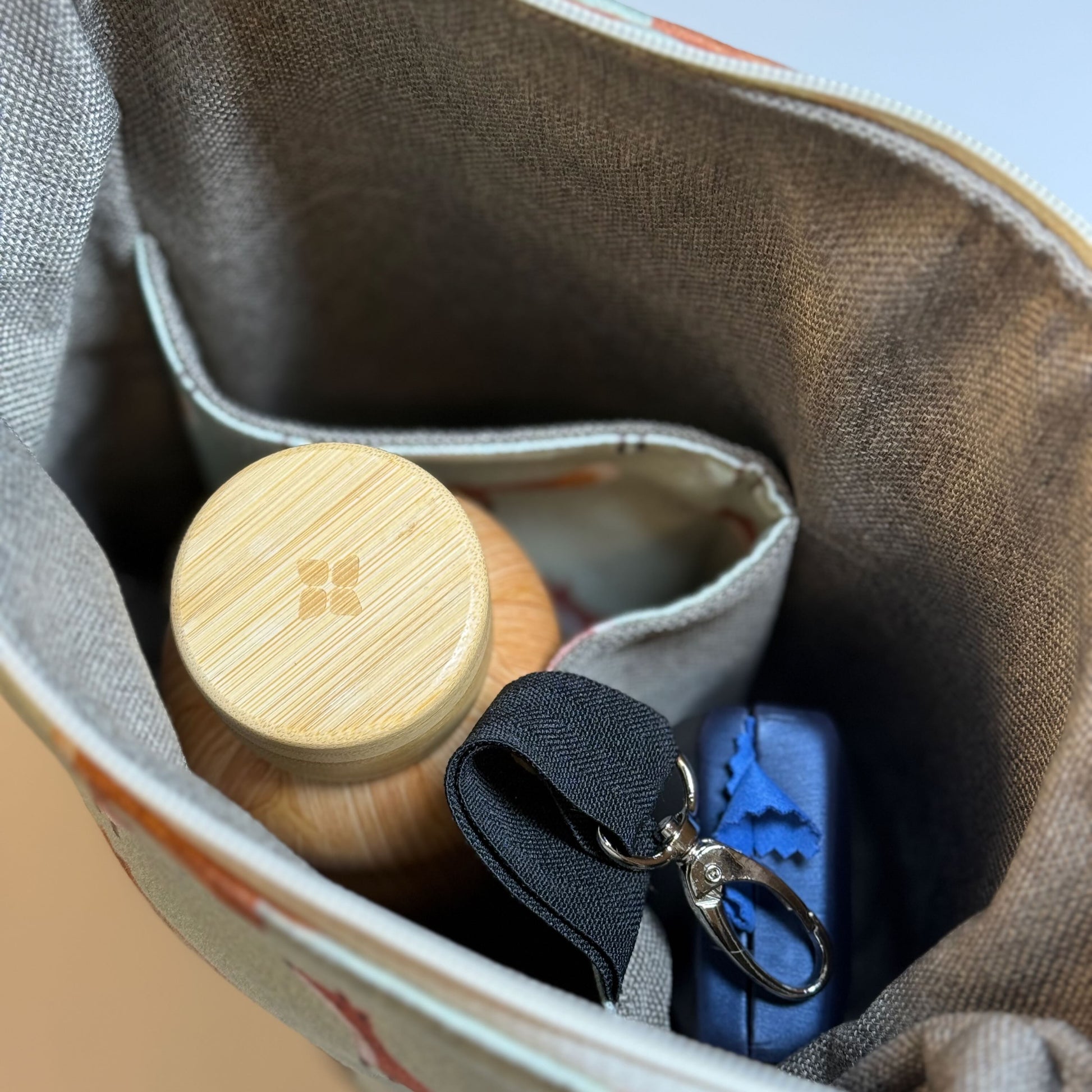 "Kerstin" wurde aus der Kombination von robustem beigem DekoCanvas und grünem BaumwollCanvas gefertigt. Der ausgefallene Motivstoff gibt ihr das besondere Gesicht. Die Farben harmonieren zu vielen Frühlings- und sommerlichen Outfits.