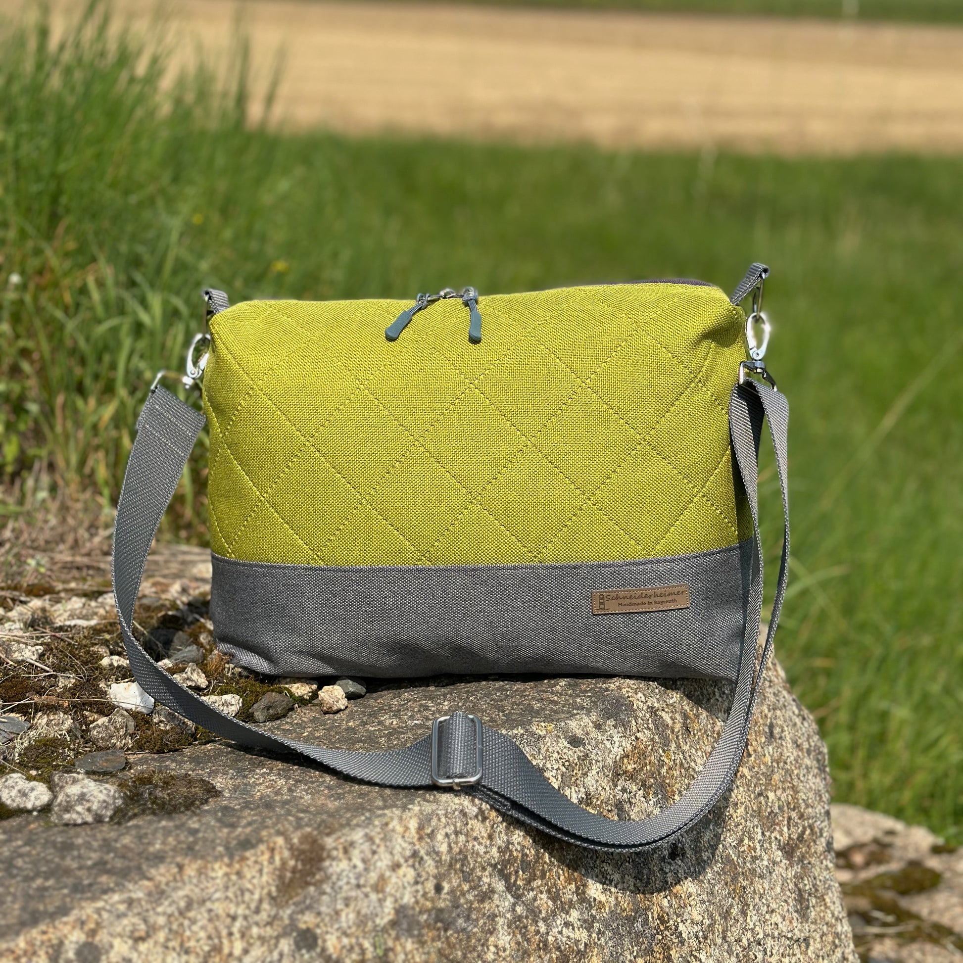 Große Umhängetasche "Lina" in Stepp - Einzelstück Apfelgrün