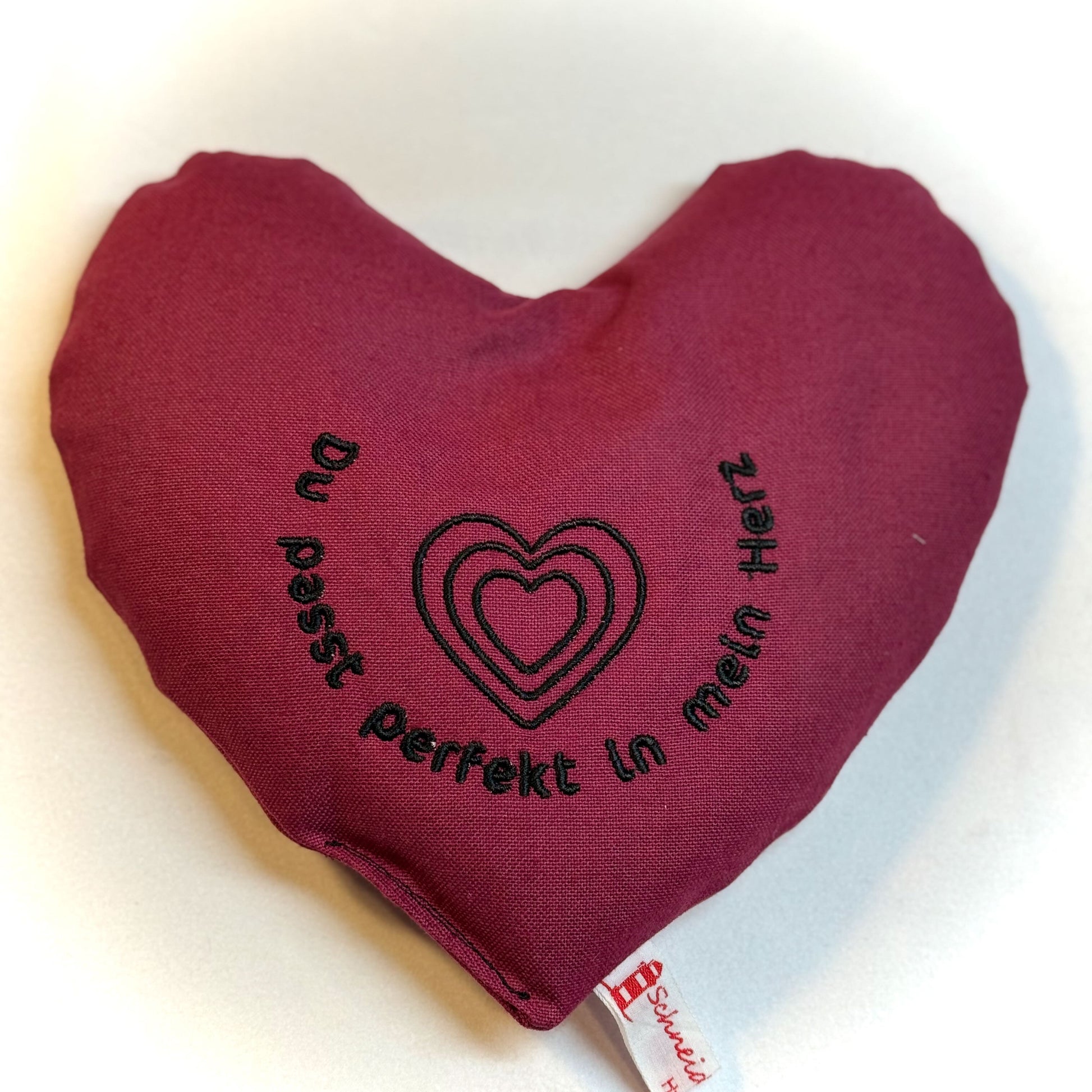 "Herzenswärmer" bestickt - "Du passt perfekt in mein Herz" Beere