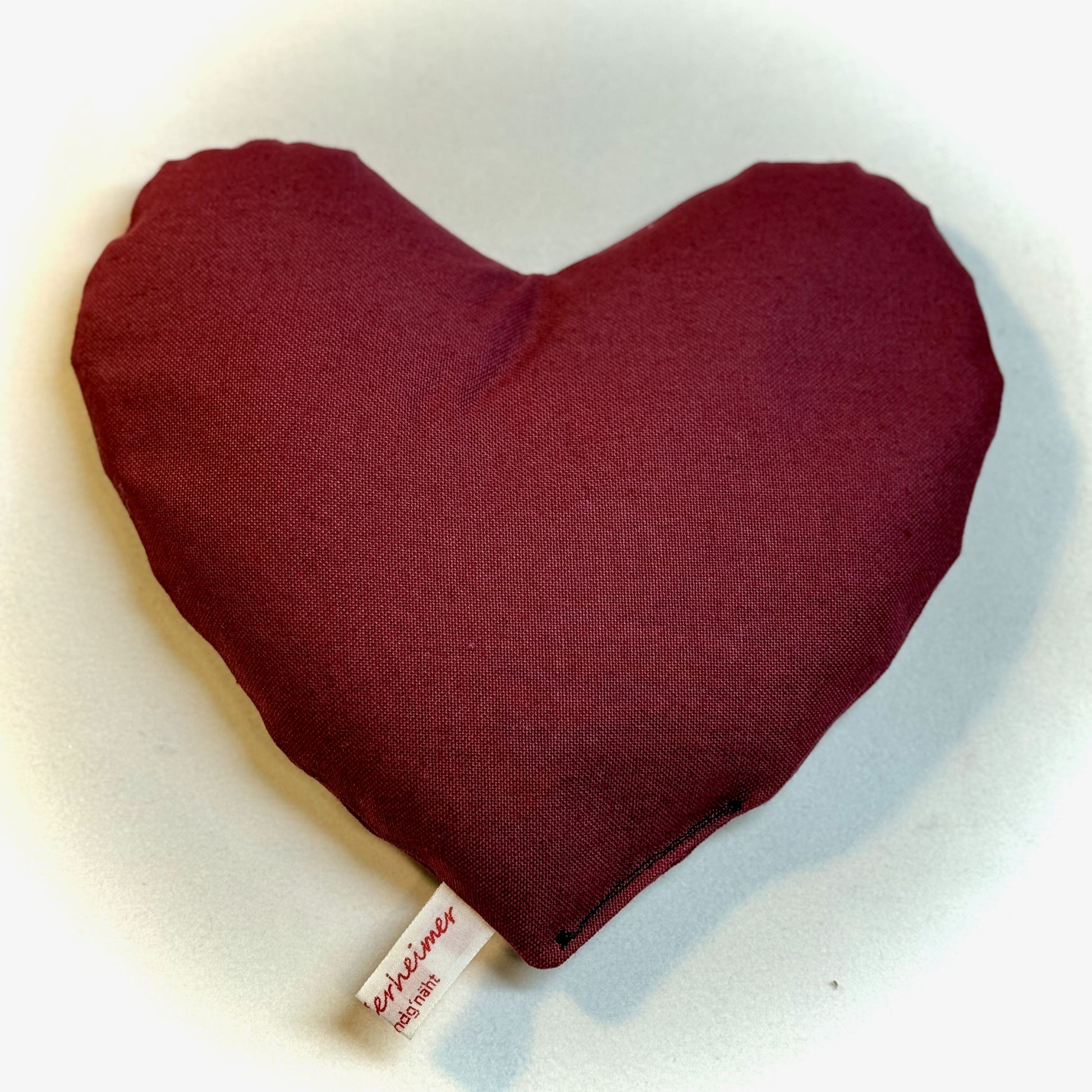 Das Herzkissen ist mit Rapssamen befüllt und ca. 22cm groß.