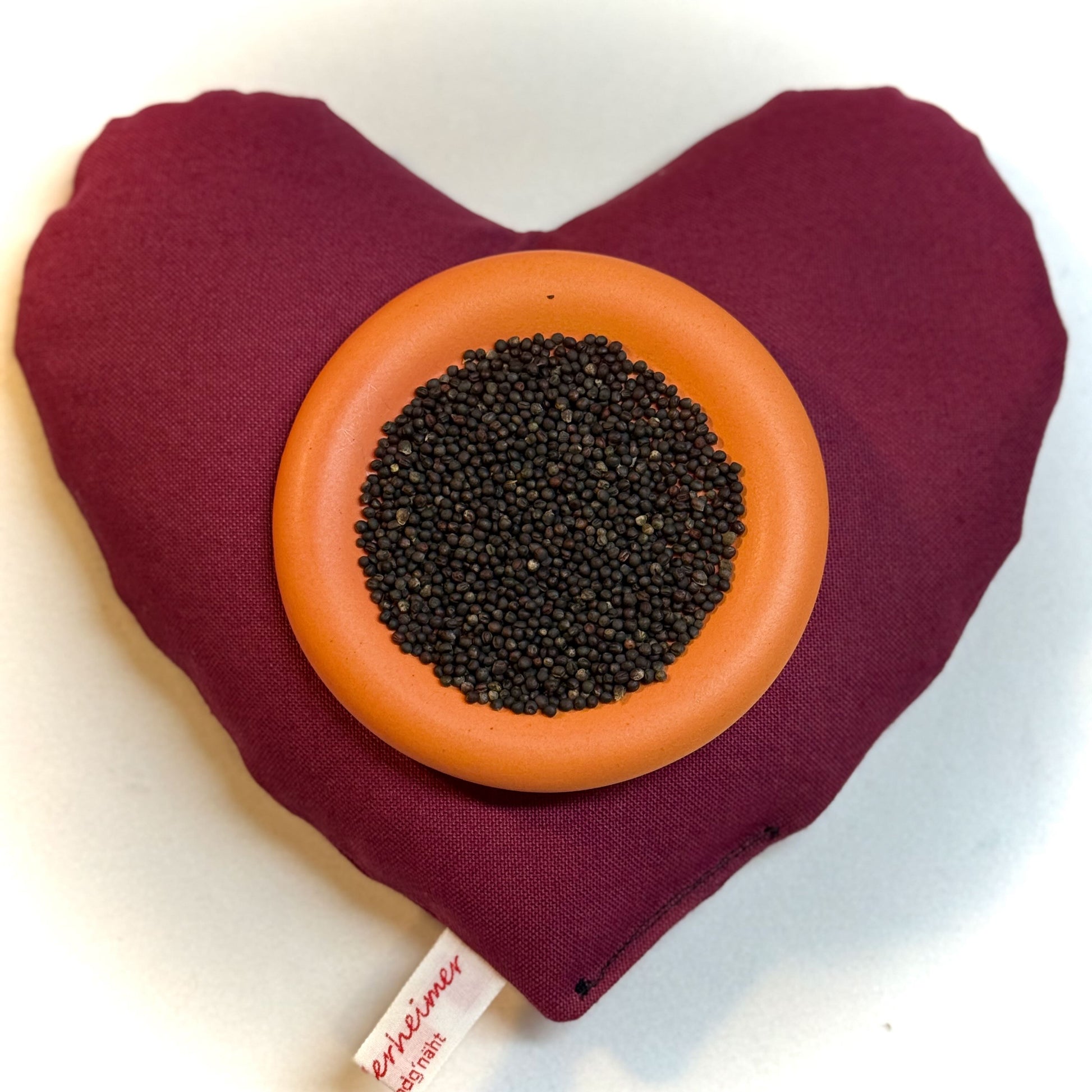 als Wärmflaschenersatz mit Naturfüllung, zur Linderung von Bauch- oder Nackenbeschwerden - wann immer Wärmeauflagen hilfreich sind, ist ein Rapssamenkissen die natürliche Variante. Der feinkörnige Rapssamen speichert die Wärme sehr gut und passt sich perfekt dem Körper an. In der Herzform ist dieses Wärmekissen eine Geschenkidee mit herzlicher Botschaft.