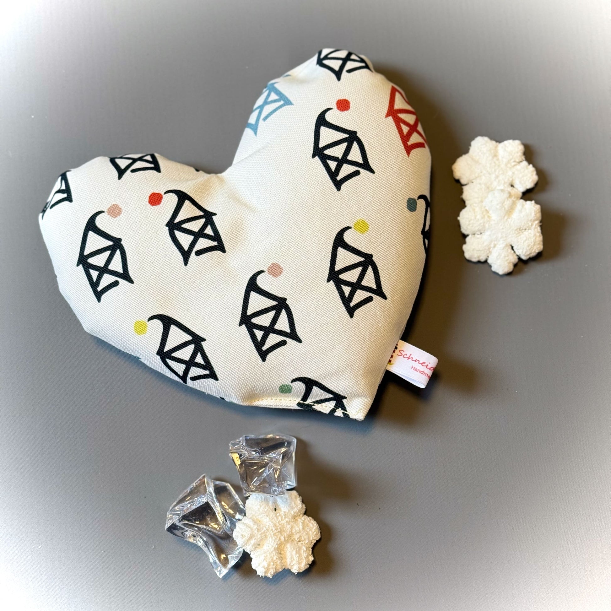 Das Herzkissen ist mit Rapssamen befüllt und ca. 22cm groß.