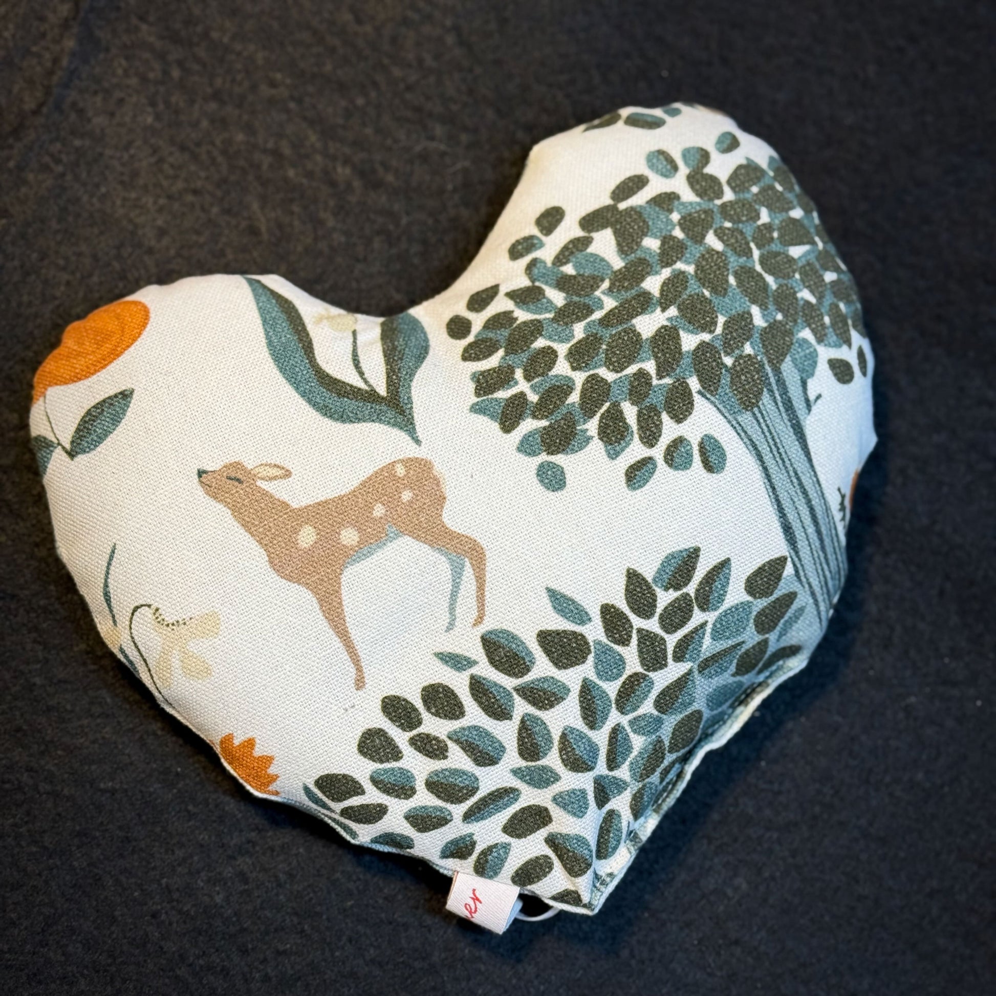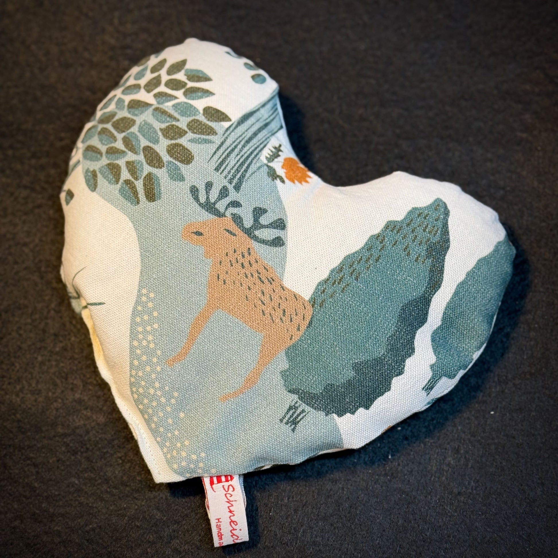Das Herzkissen ist mit Rapssamen befüllt und ca. 22cm groß.
