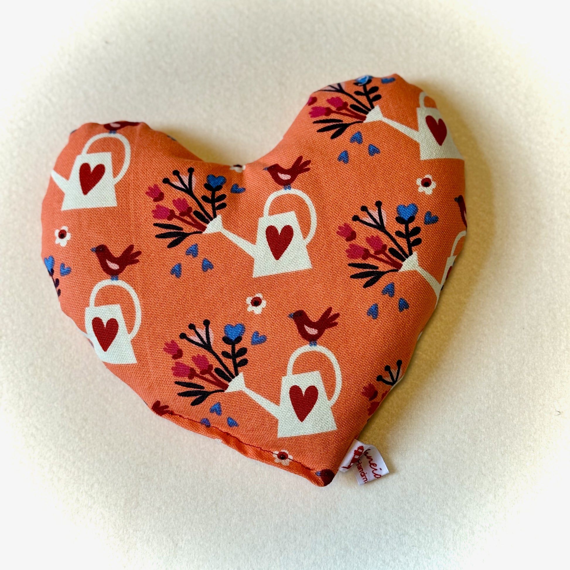 Das Herzkissen ist mit Rapssamen befüllt und ca. 22cm groß.