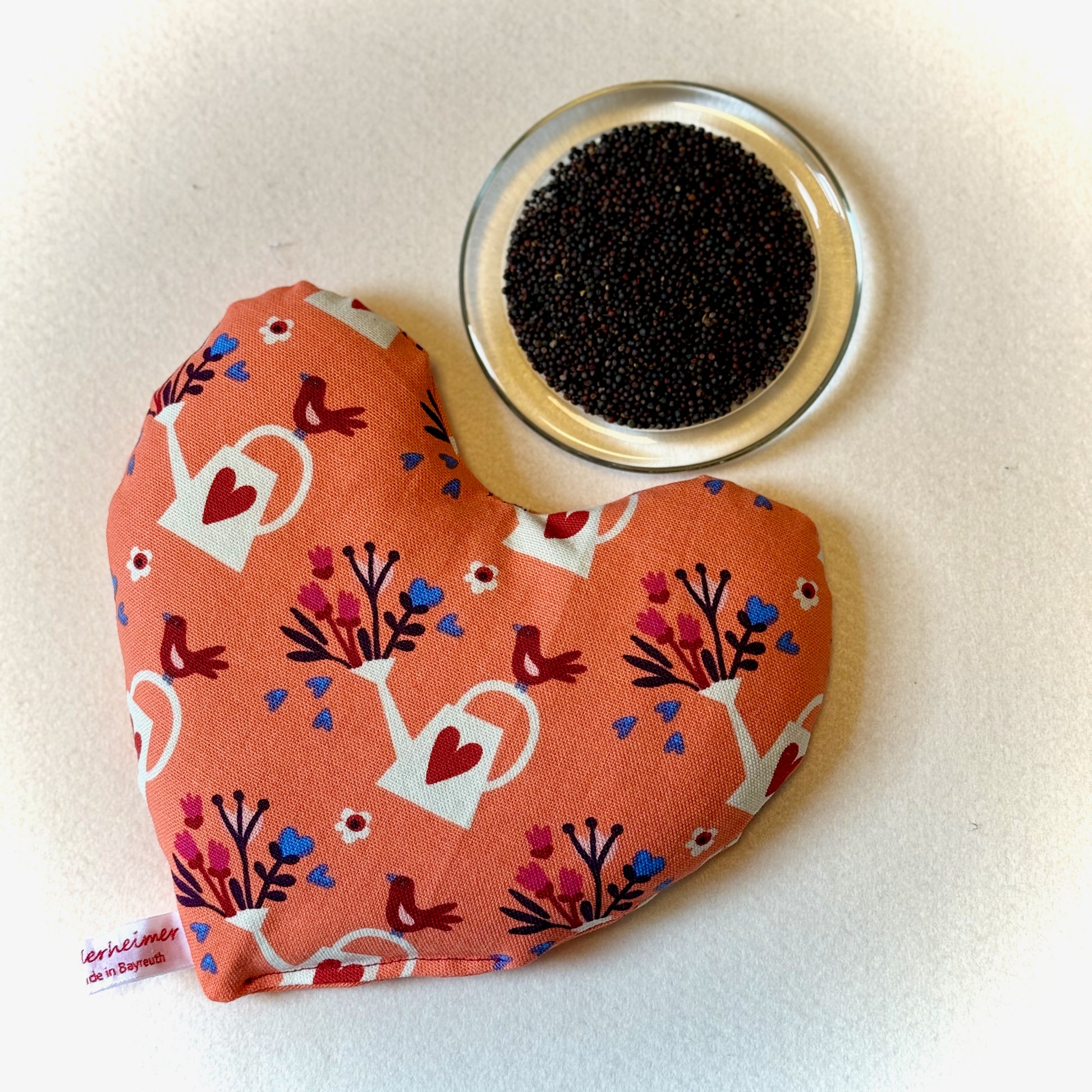 als Wärmflaschenersatz mit Naturfüllung, zur Linderung von Bauch- oder Nackenbeschwerden - wann immer Wärmeauflagen hilfreich sind, ist ein Rapssamenkissen die natürliche Variante. Der feinkörnige Rapssamen speichert die Wärme sehr gut und passt sich perfekt dem Körper an. In der Herzform ist dieses Wärmekissen eine Geschenkidee für Ihre Lieblingsmenschen oder für Sie selbst.