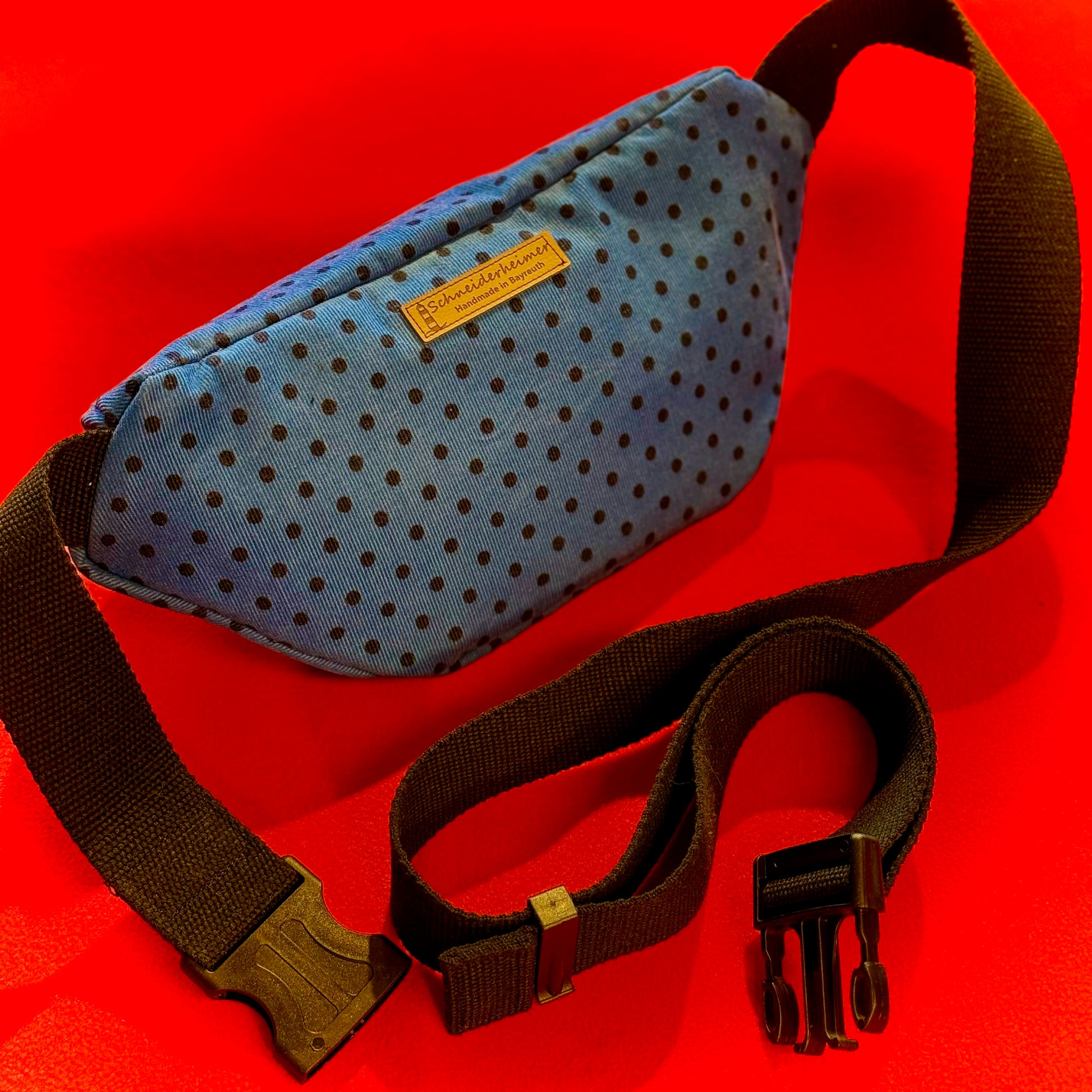 Der längenverstellbare Tragegurt aus 4cm breitem Gurtband hat einen praktischen Steckverschluss. Die Tasche kann Crossover oder um den Bauch getragen werden und hat kaum Eigengewicht.