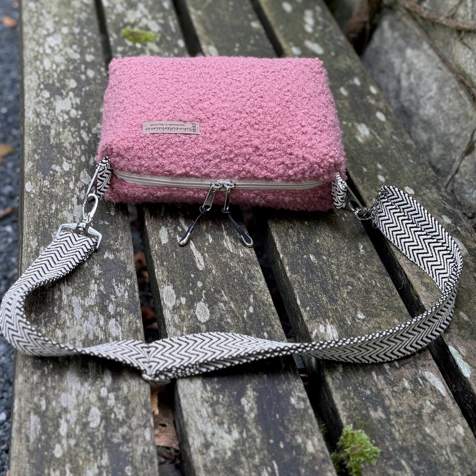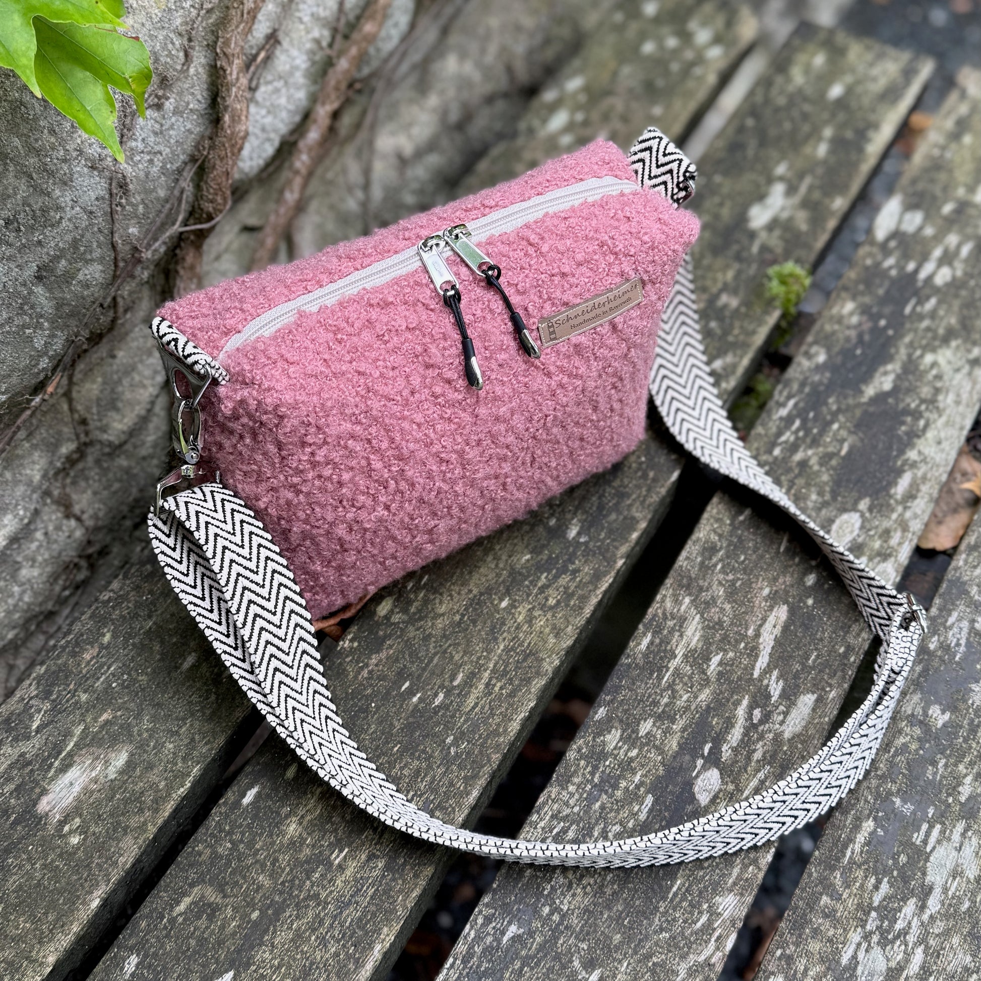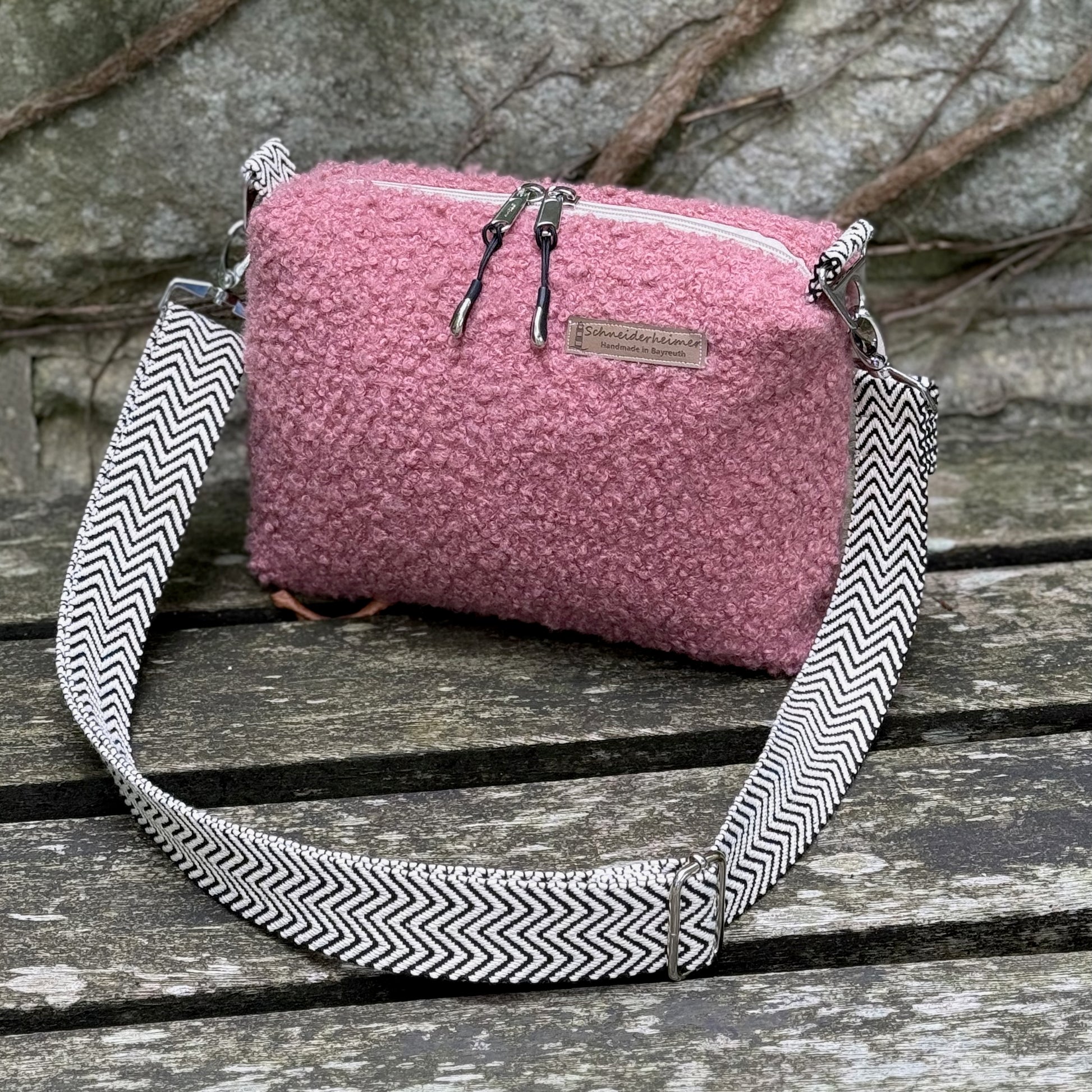 Die versandbereite Umhängetasche "Leni" in Boucle ist eine zauberhafte Begleitung durch die kalte Jahreszeit.