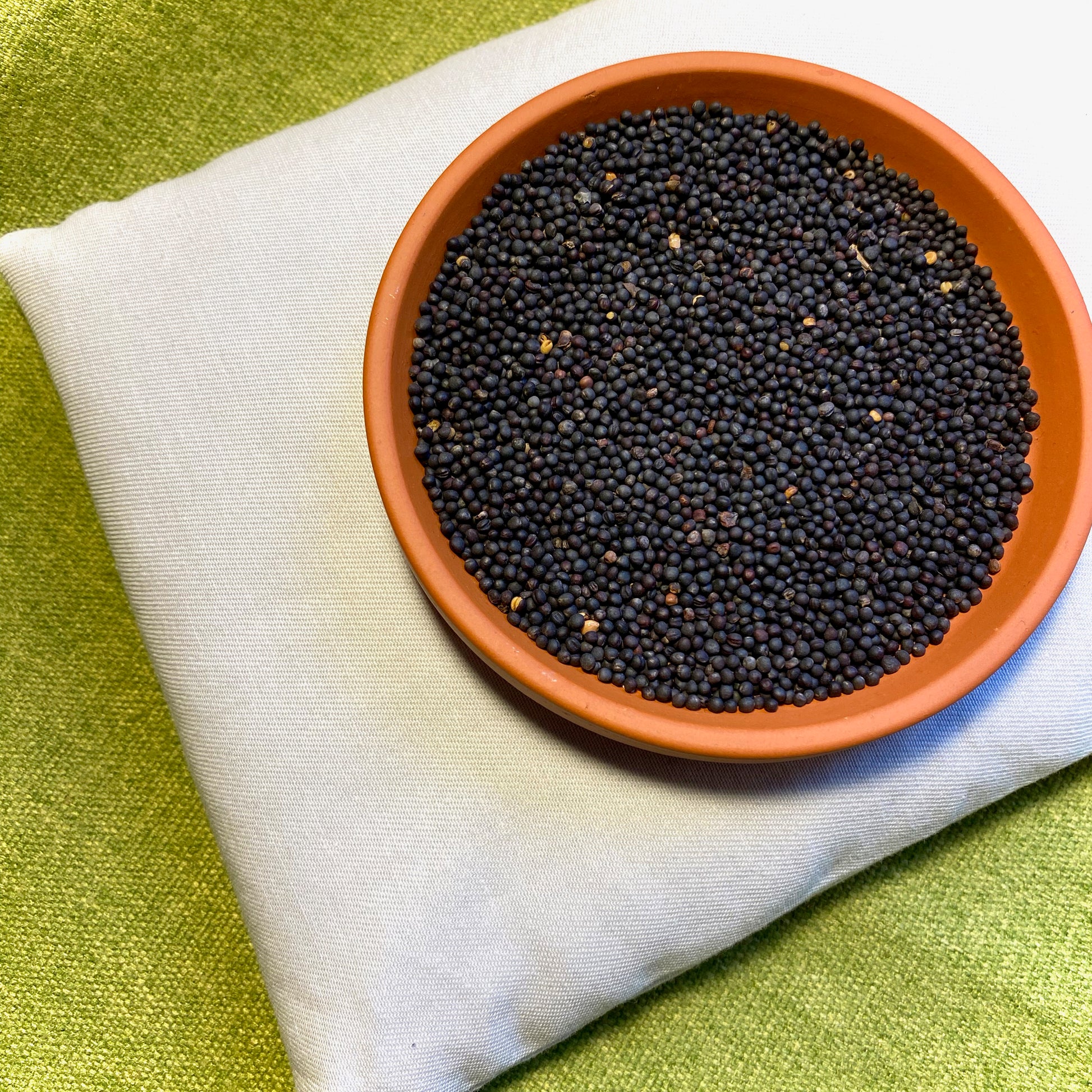 Das Inlett aus Baumwollstoff ist direkt befüllt mit feinkörnigem Rapssamen. Es ist nicht waschbar und sollte nicht nass werden.
