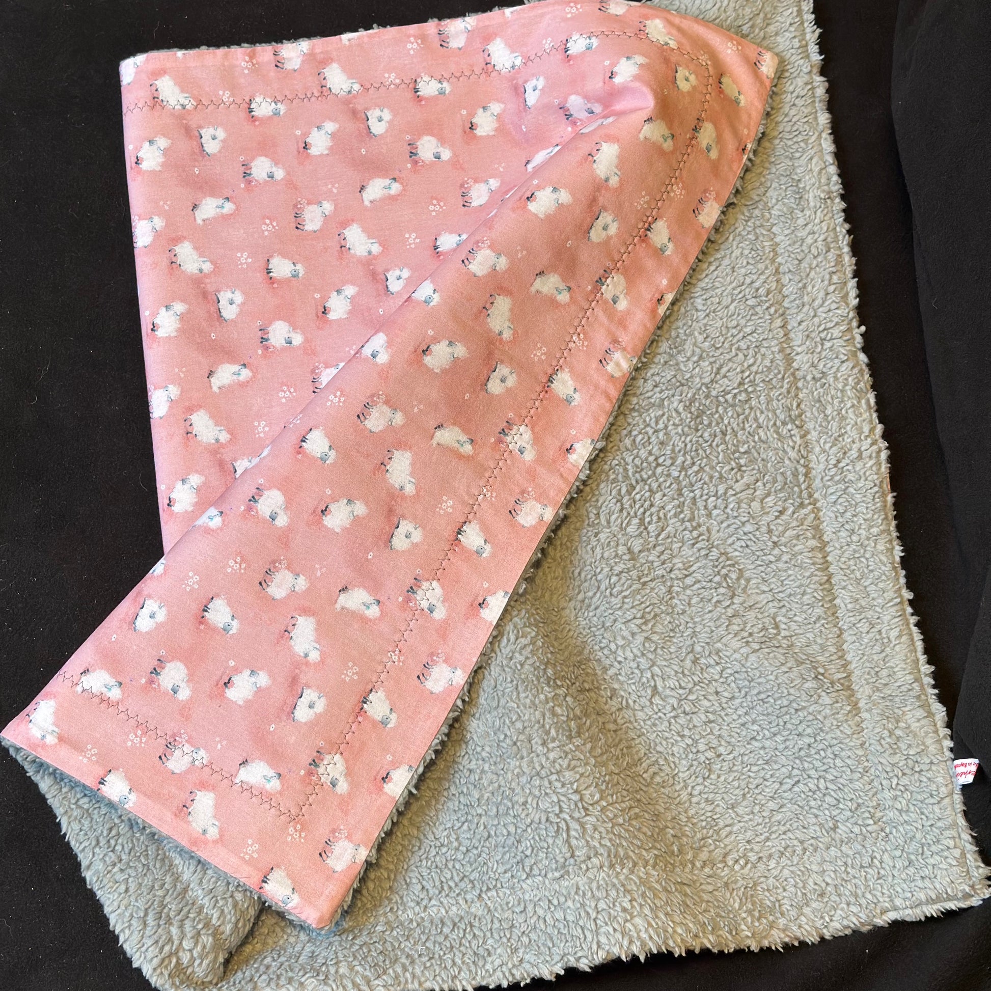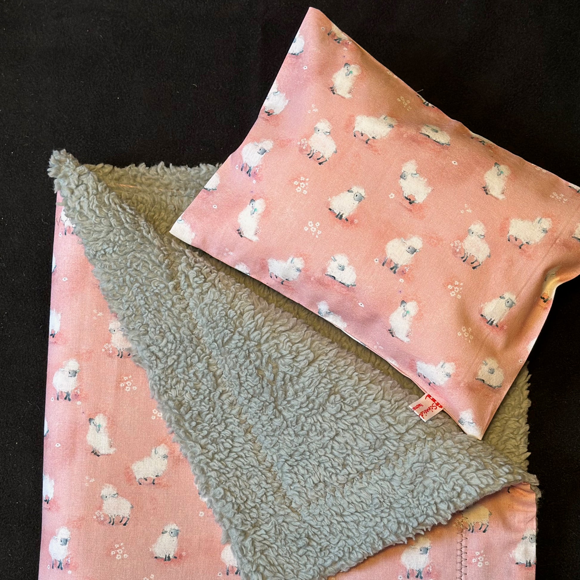 Dieses versandbereite Unikat-Set für Babys besteht aus einer Kuscheldecke und einem passenden Wärmekissen.