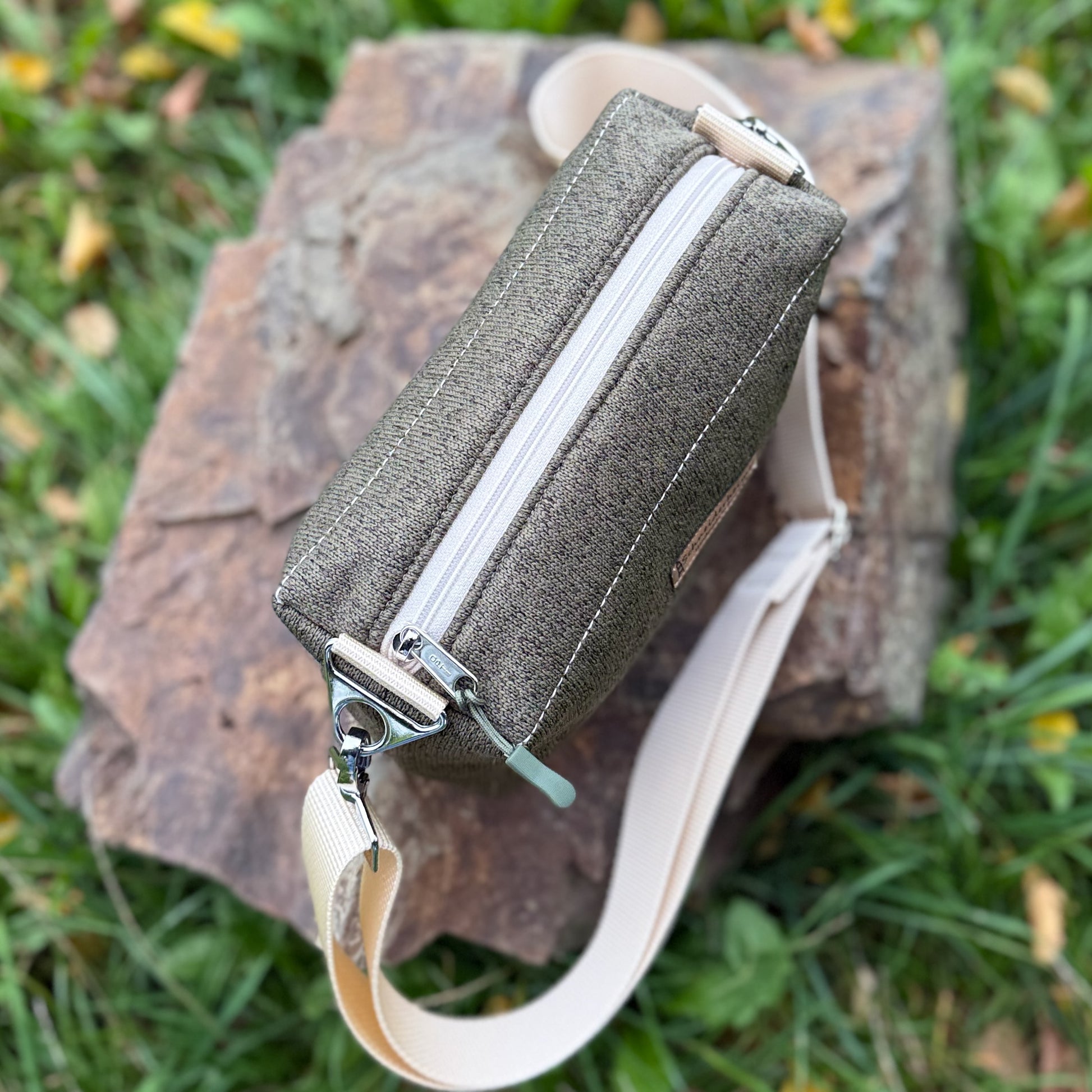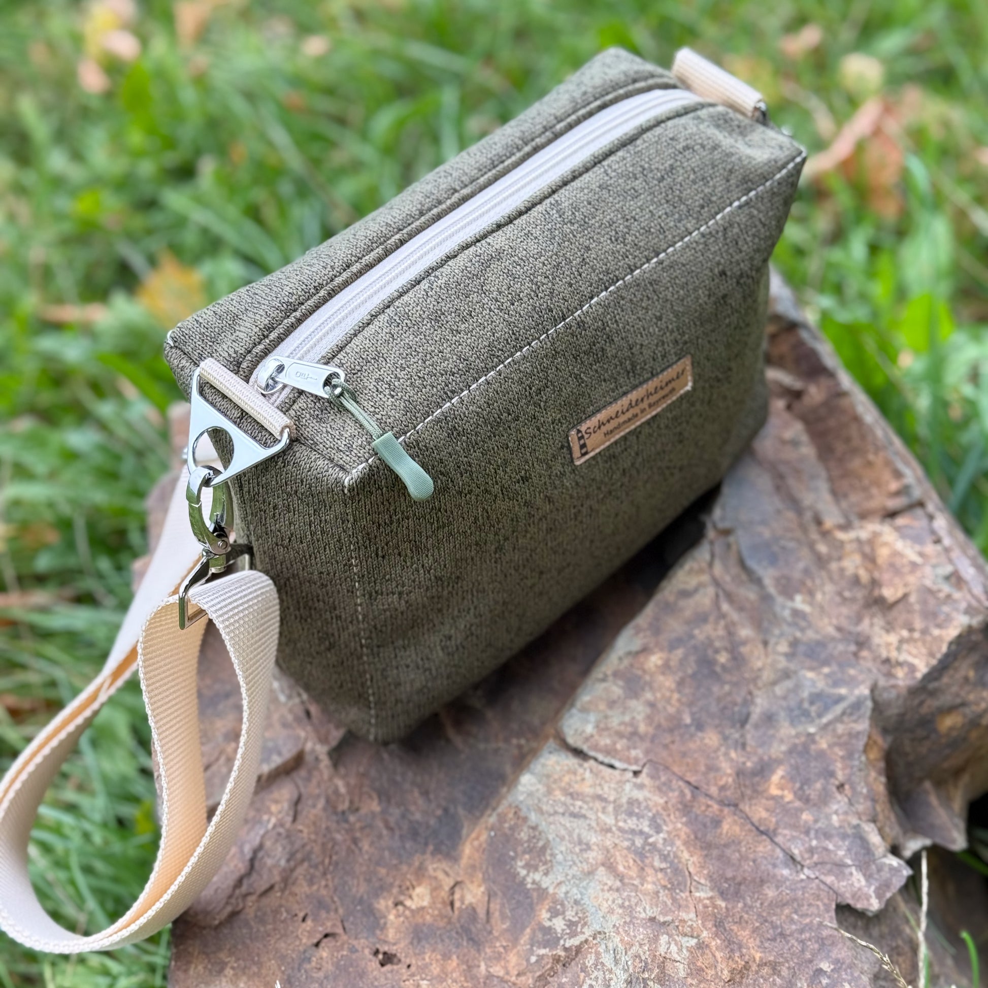 Die versandbereite Umhängetasche "Leni" in Grün ist eine wetterfeste Begleitung durch die kalte Jahreszeit.