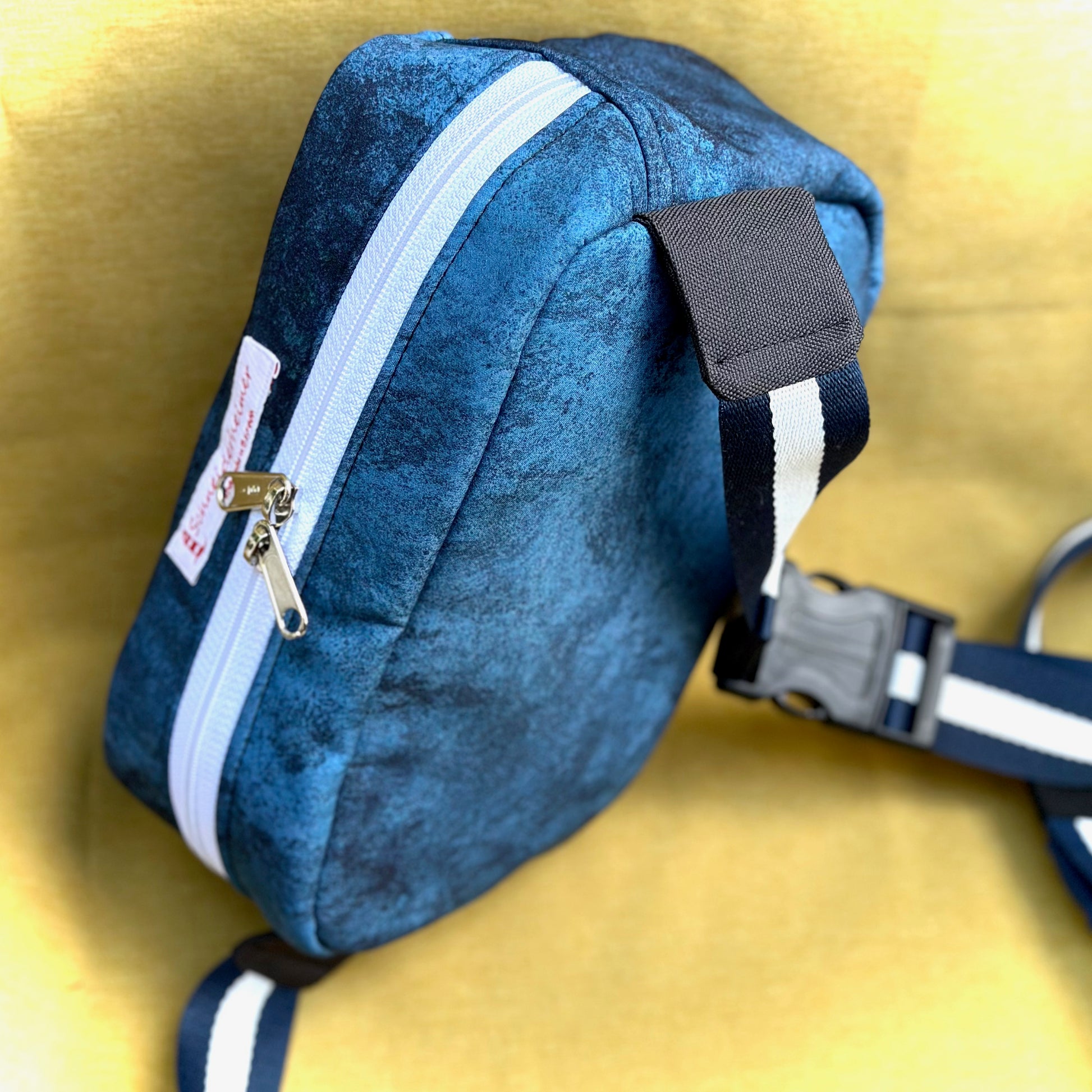 "Leon" hat eine Breite von ca. 24cm, er ist ca. 14cm hoch und 7cm tief. Mit dem Softshell Ihrer Wahl als Außenmaterial gestalten wir Ihre Tasche im Wunschdesign. Auf der Vorderseite nähen wir ein "Versteckfach" für Schlüssel oder Handy ein.