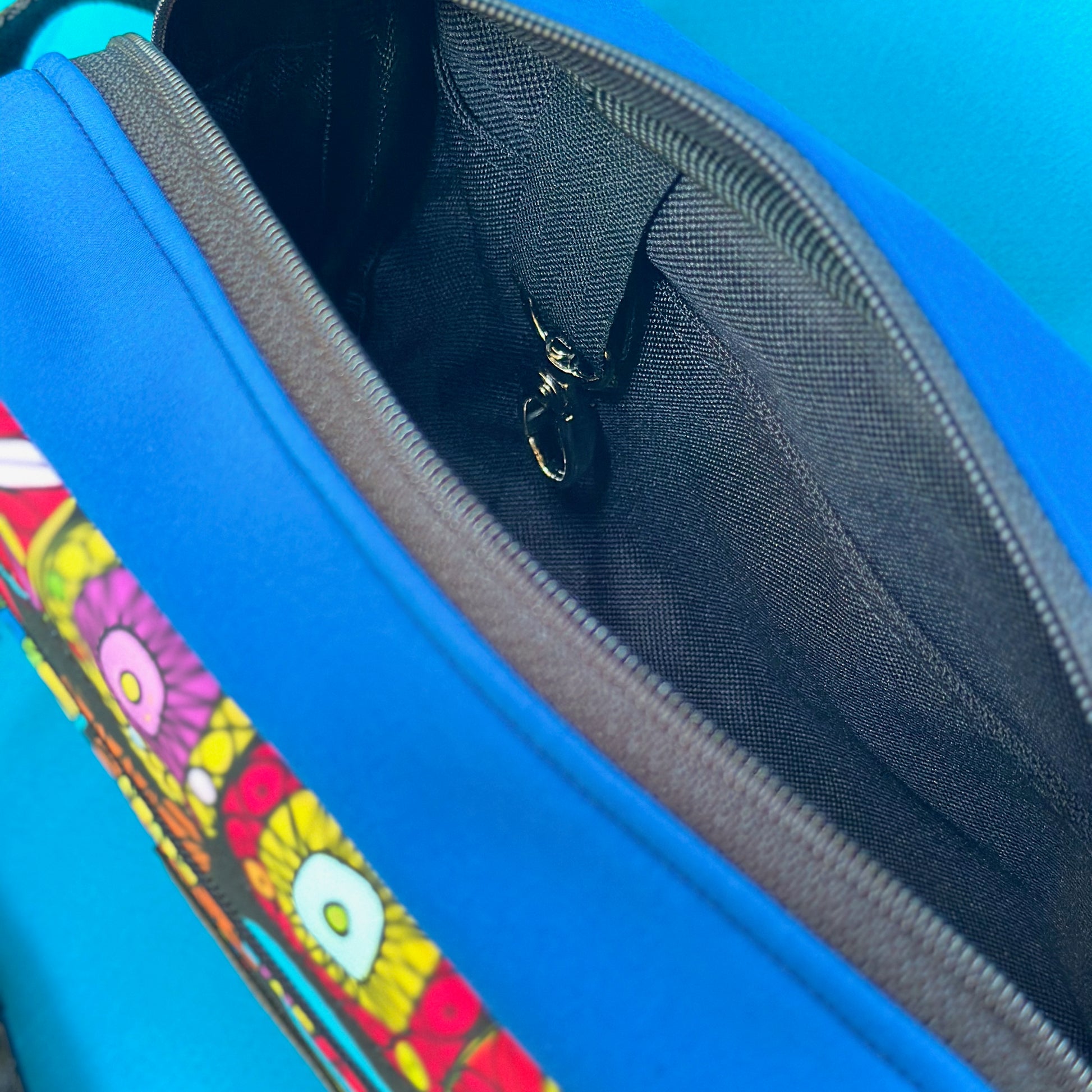 "Clara" hat eine Breite von ca. 24cm, er ist ca. 14cm hoch und 7cm tief. Mit dem Softshell Ihrer Wahl als Außenmaterial gestalten wir Ihre Tasche im Wunschdesign. Auf der Vorderseite nähen wir ein "Versteckfach" für Schlüssel oder Handy ein.