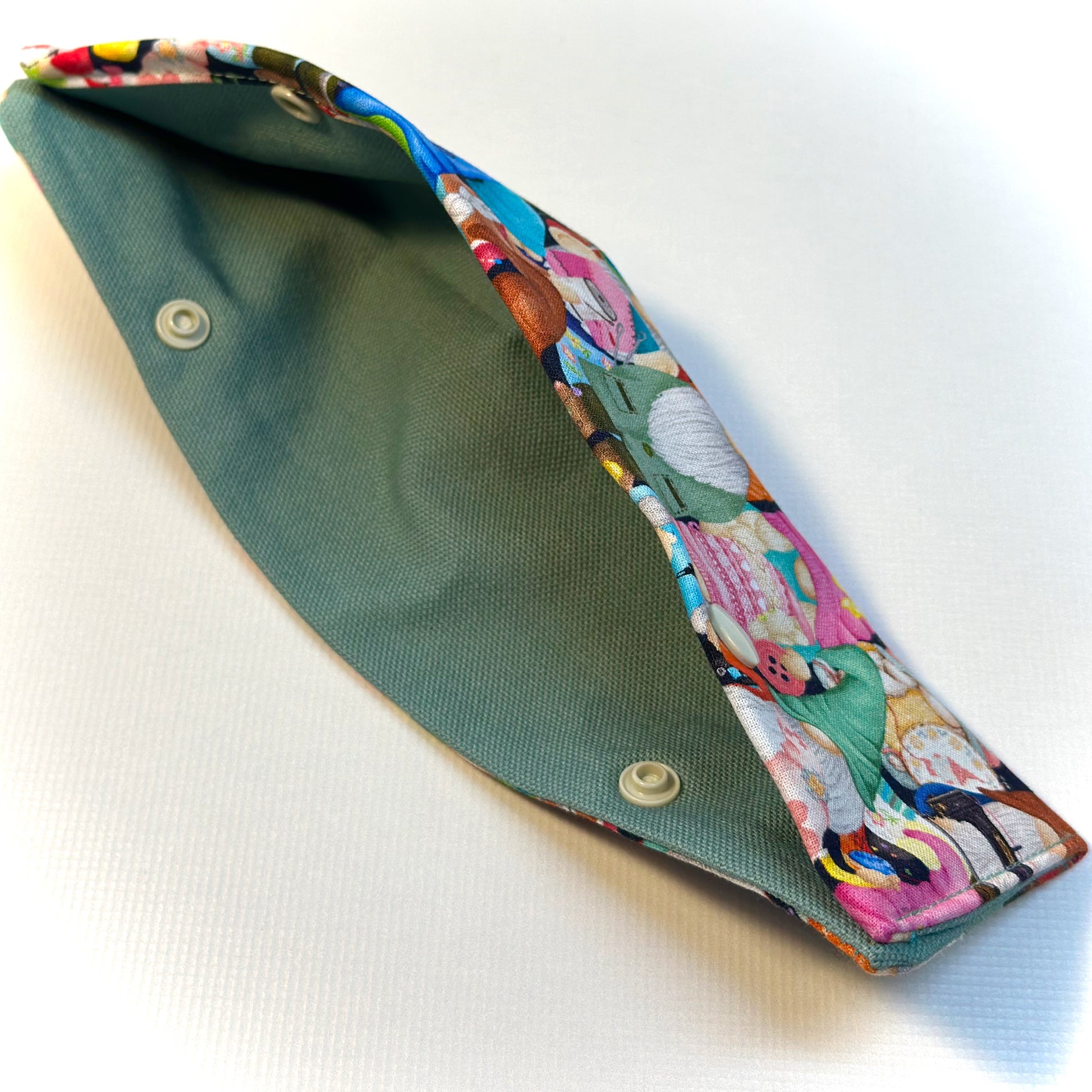 Diese bunte "Nadelgarage" aus fröhlichem Patchworkstoff und grünem Canvas ist ein versandbereites Einzelstück.