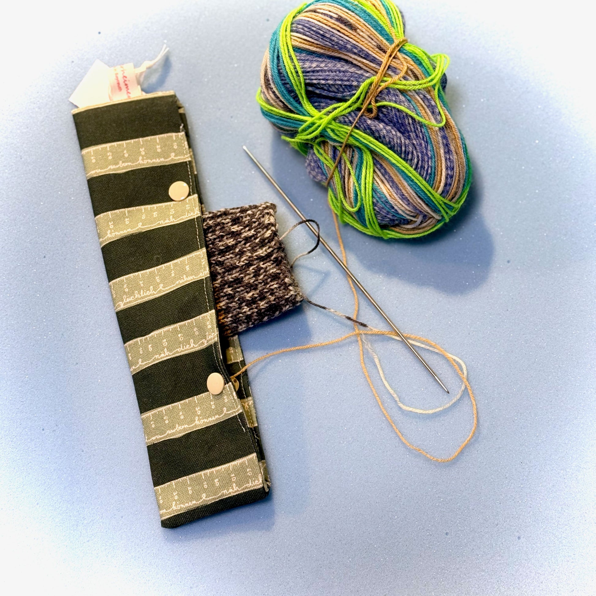 Sie verhindert, dass die Nadeln aus Ihrer Handarbeit rutschen und ermöglicht so die praktische Aufbewahrung und den sicheren Transport des Strickzeugs.
