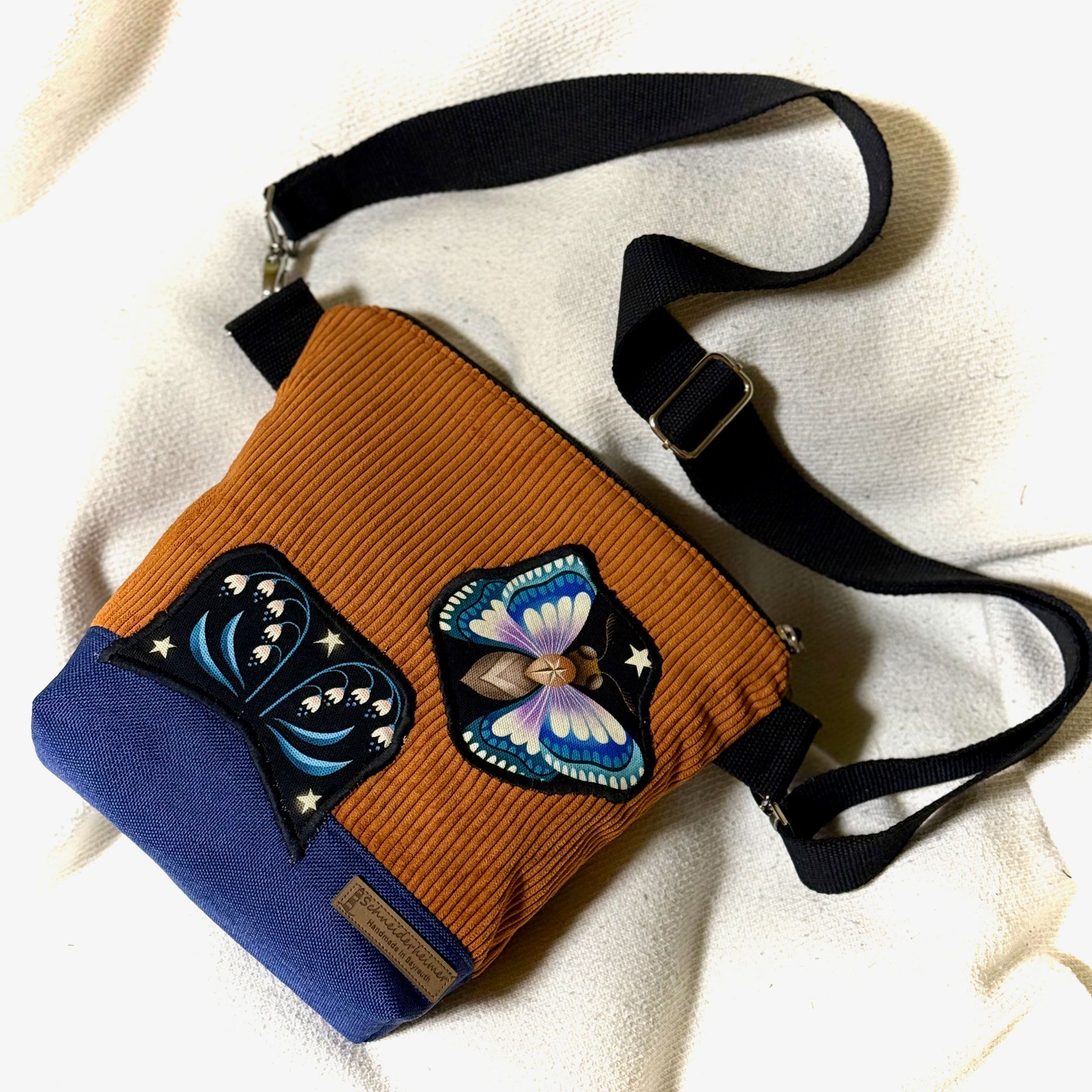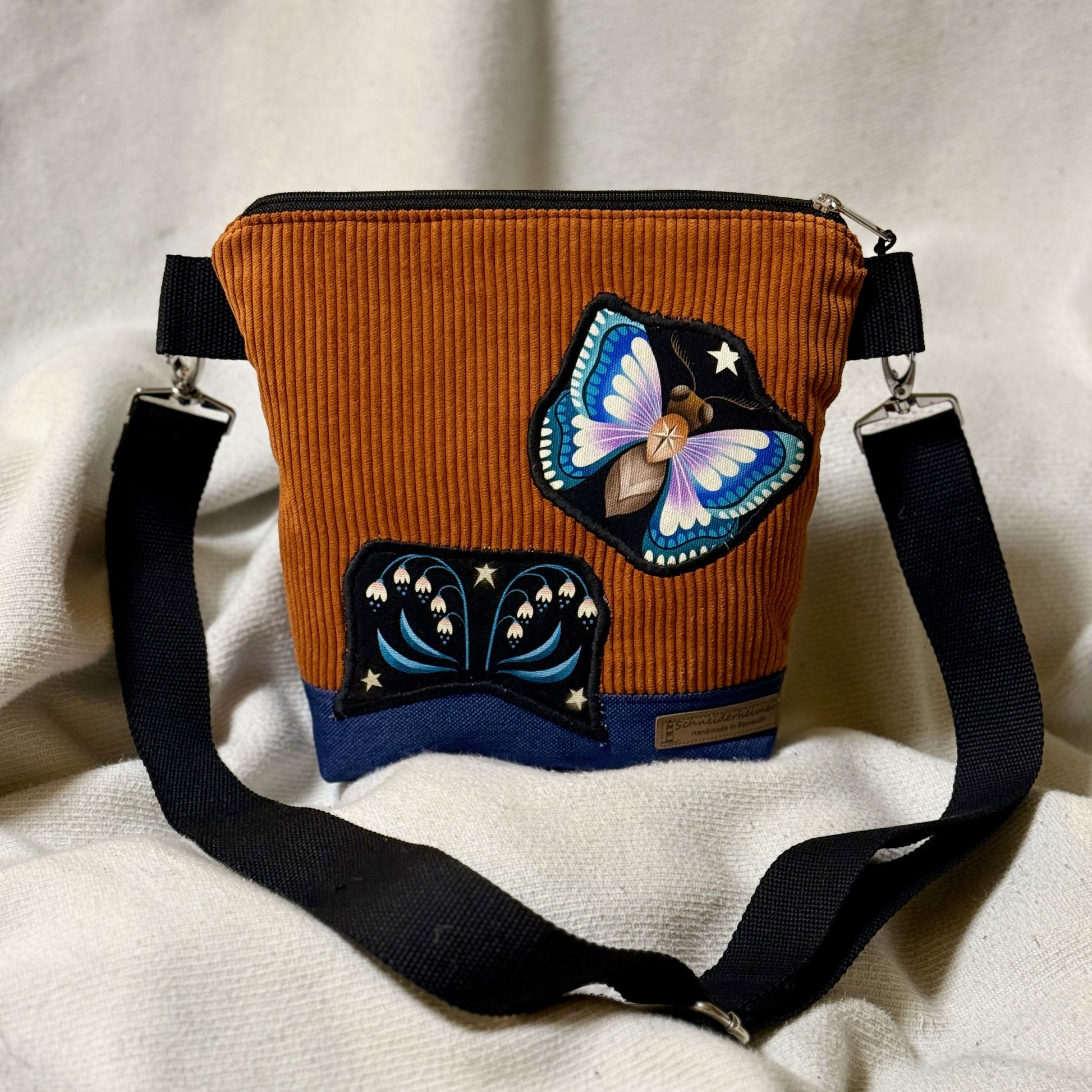 Die "Petra" in der Kombination aus Cordstoff und Canvas ist ein versandbereites Unikat. Die Applikationen im Design von Hamburger Liebe sorgen für den Hingucker-Effekt.