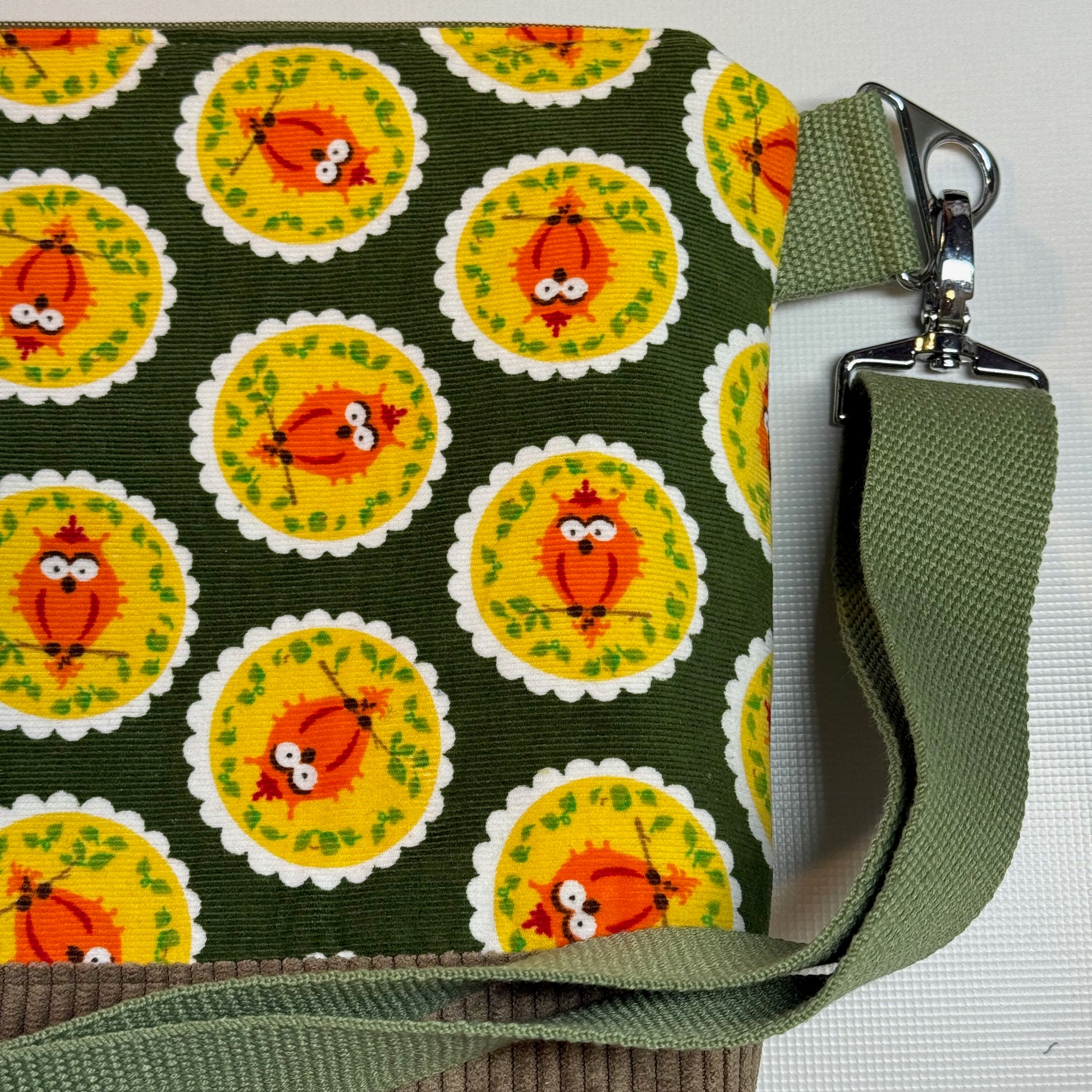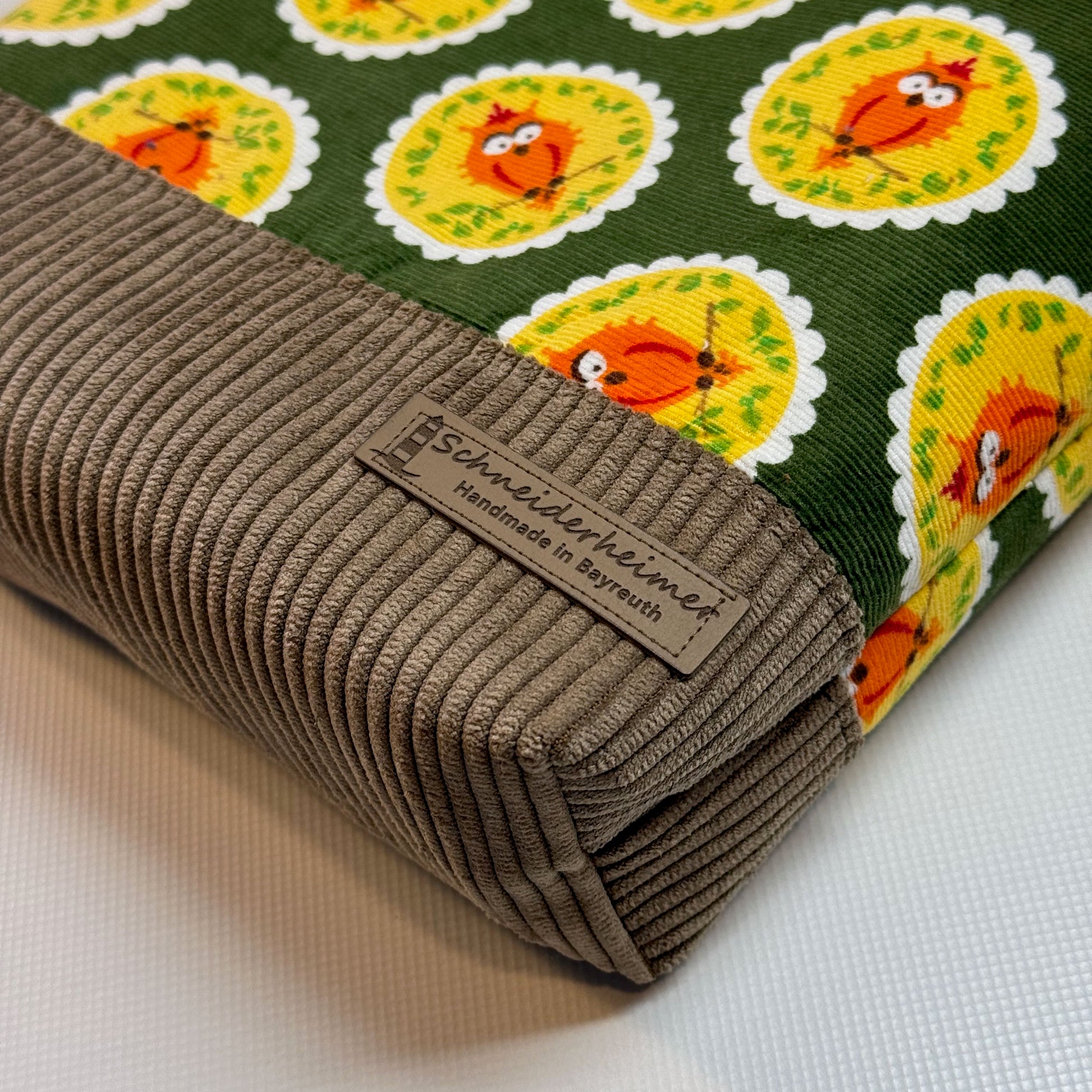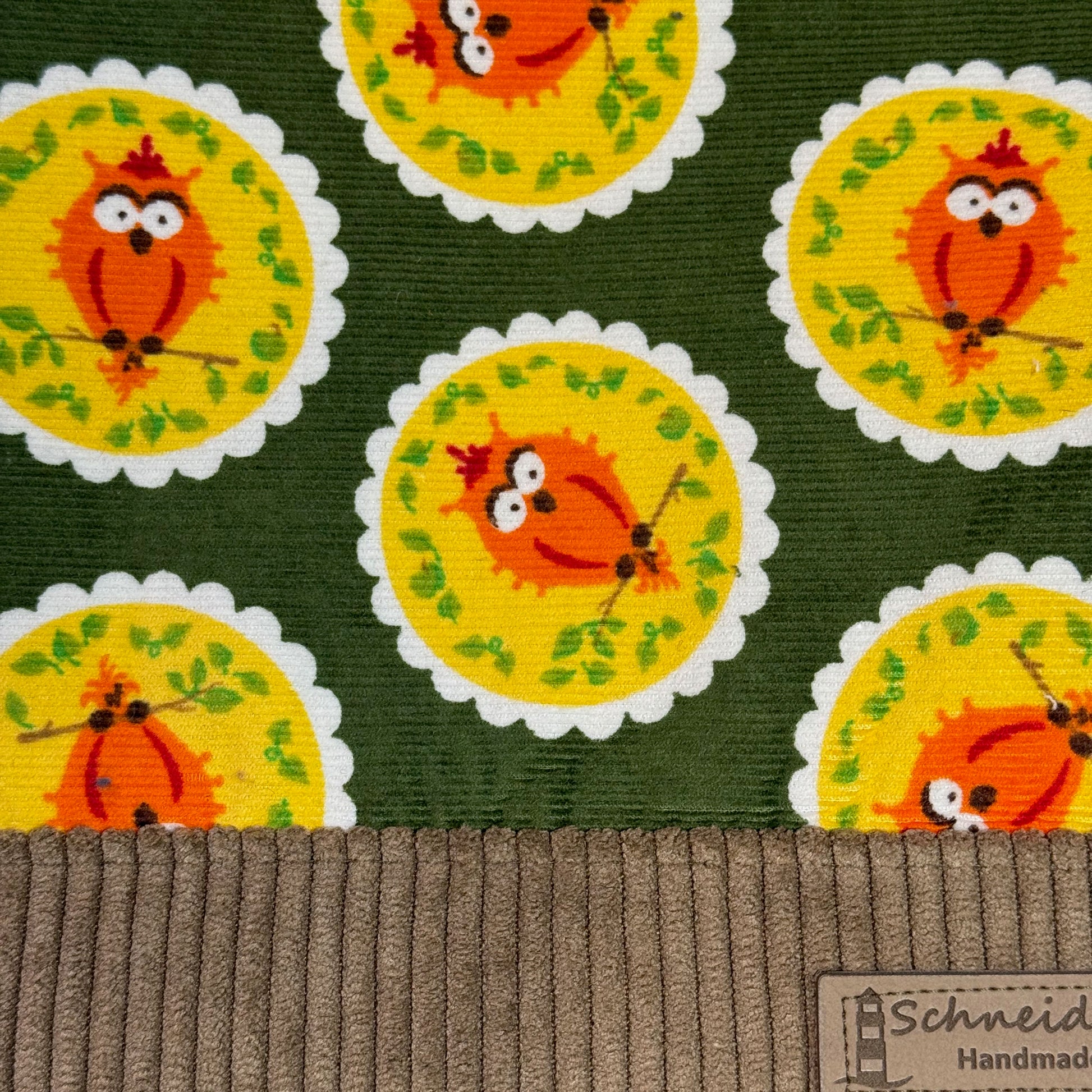 "Petra" im Quadratformat - Einzelstück Cord mit Fröhlichen Eulen