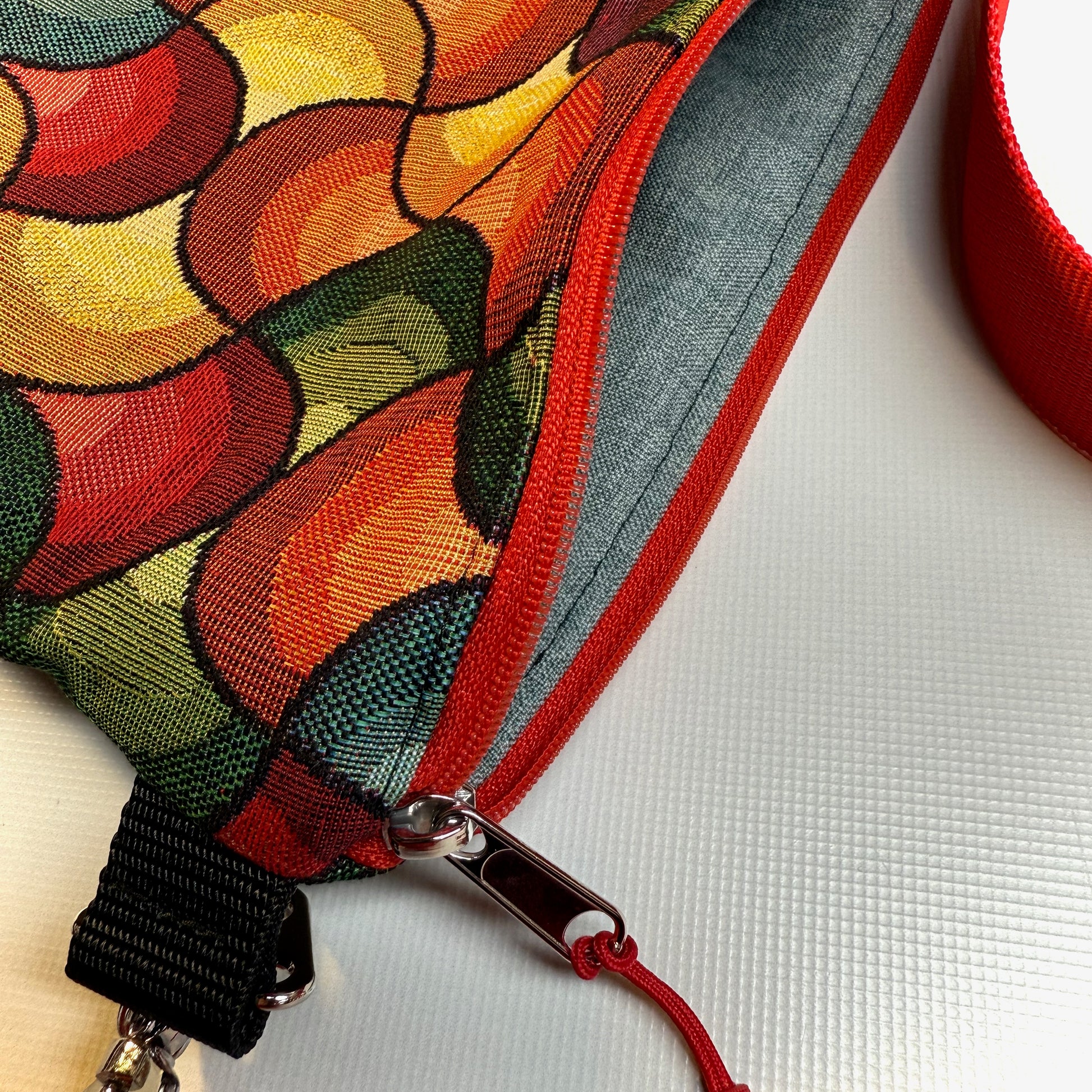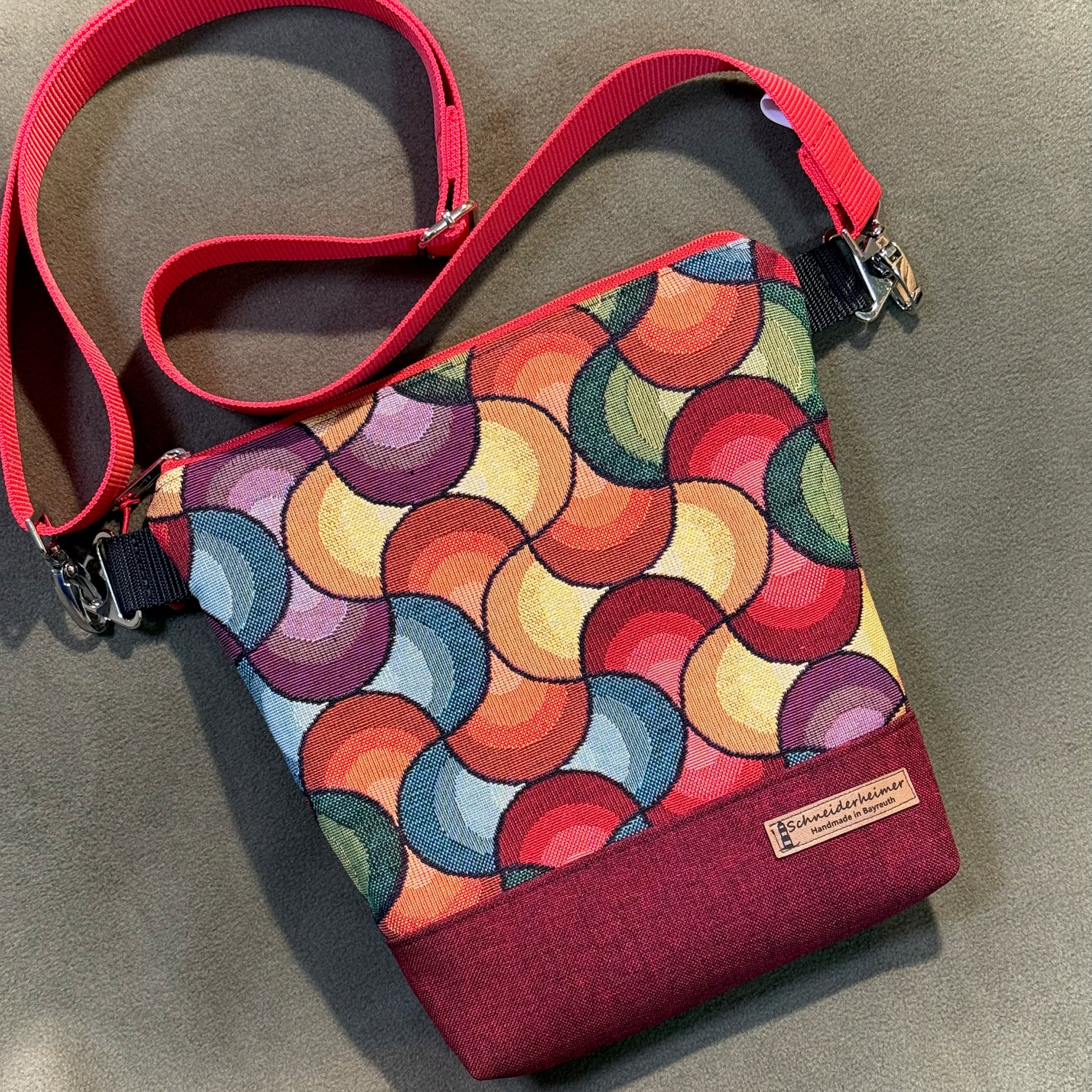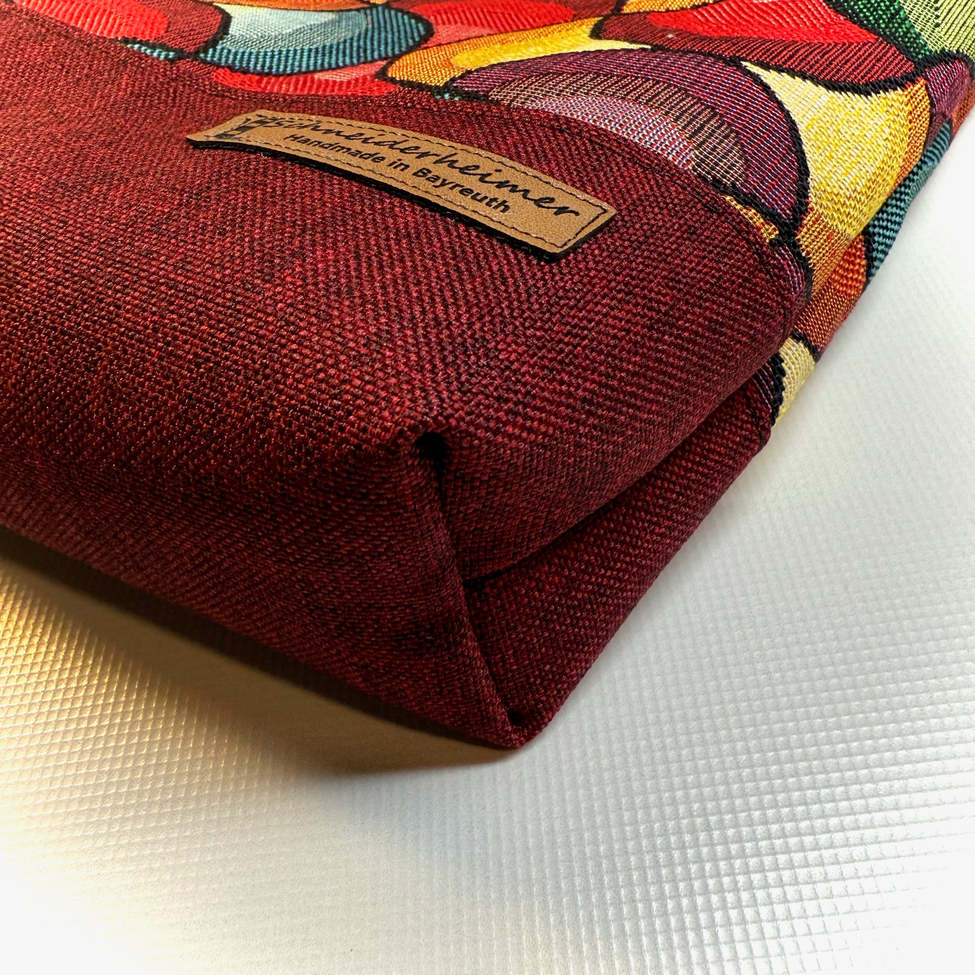 Unsere Umhängetasche "Petra" mit Platz für alles Relevante und etwas mehr ist dieses Unikat im praktischen Quadratformat. Die Kombination aus hochwertigem Gobelin und robustem DekoCanvas in Dunkelrot machen sie zum Hingucker, der mit vielfältigen Outfits harmoniert.