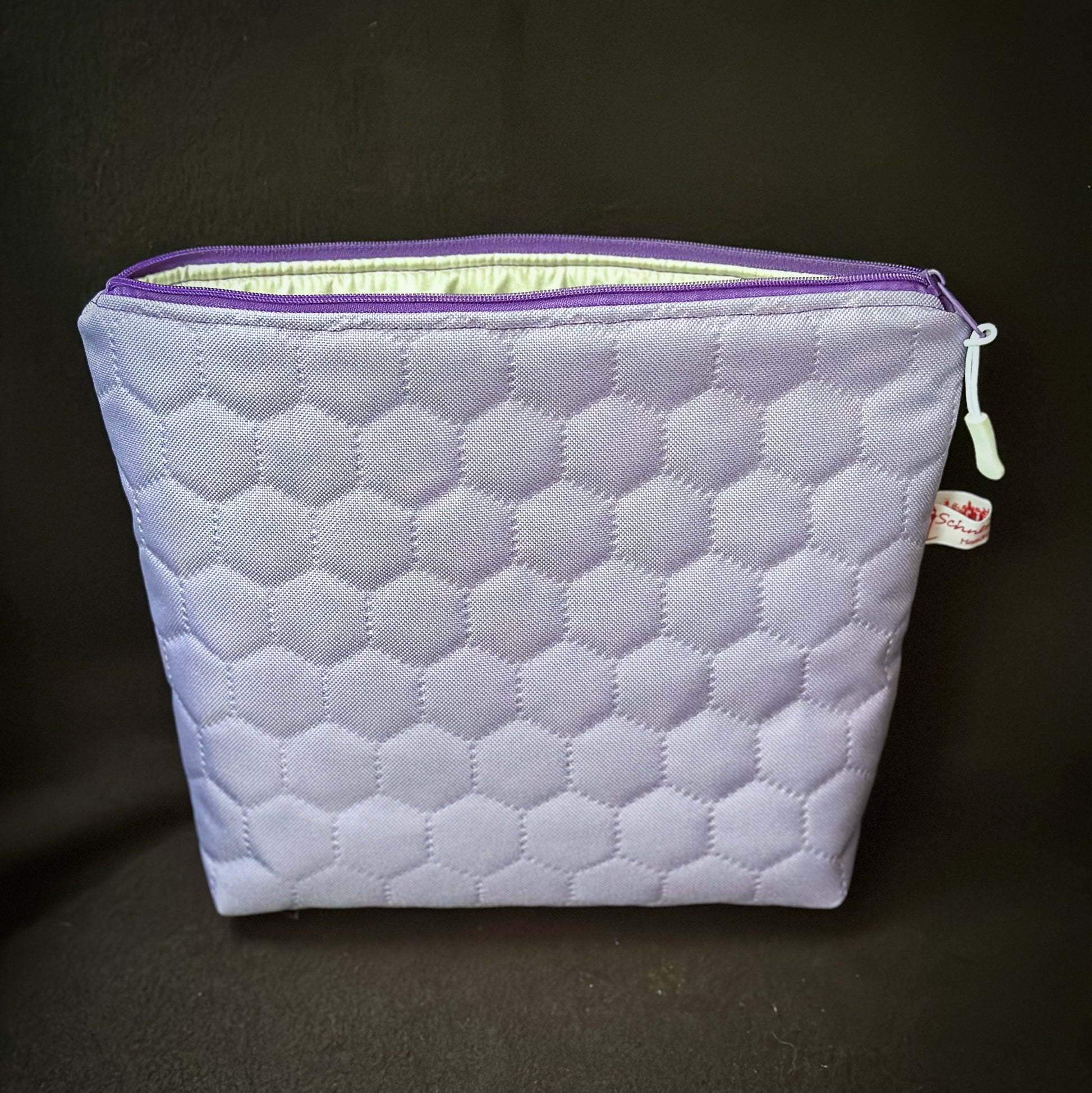 Material: Steppstoff 100% Polyester (wasserabweisend und abwaschbar), Thermolam, Silberstoff, Reißverschluss dunkelblau