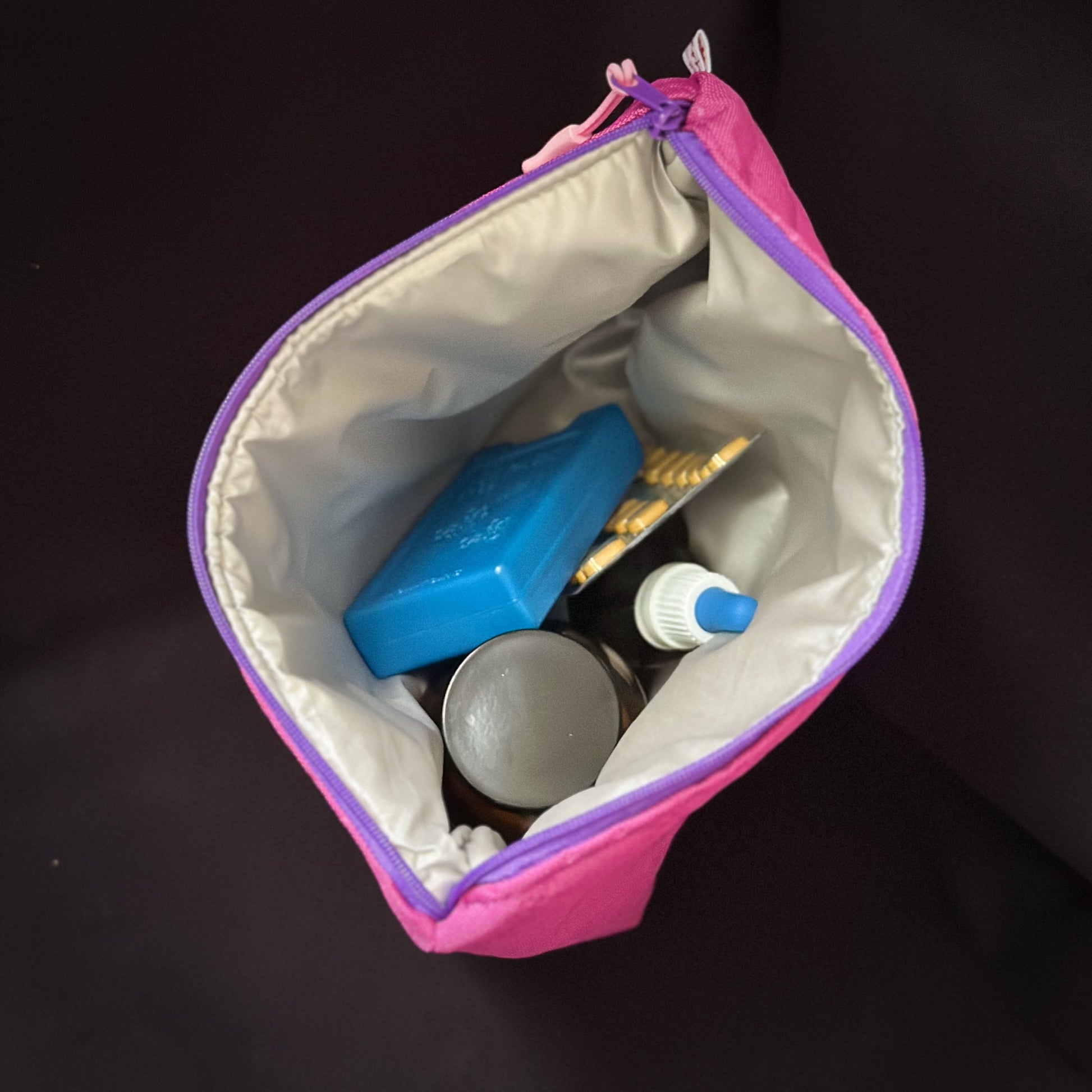 Unser Thermo-Täschchen in dreilagiger Ausstattung isoliert auch in der warmen Jahreszeit und auf Reisen Ihre Medikamente, Süssigkeiten, Kosmetik und mehr zuverlässig. In der Maxigröße findet auch ein Kühlakku zusätzlich darin Platz.