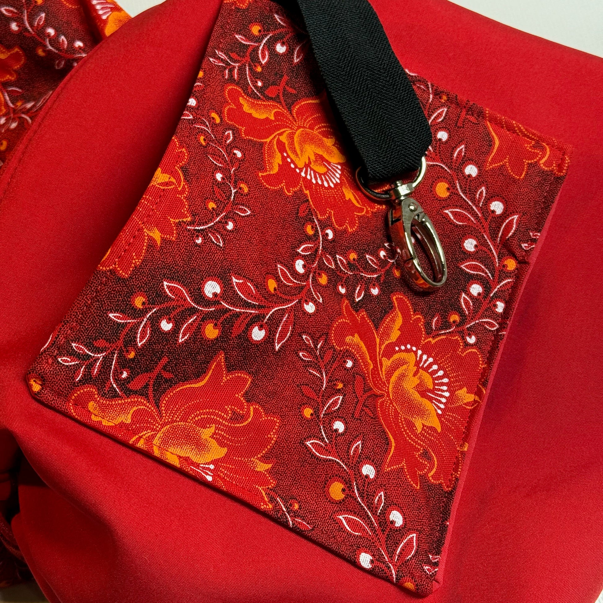 Der rote Gurt kann in der Länge verstellt und bequem gewechselt werden. Er ist 4cm breit und aus Baumwoll-/Polyestermischung.