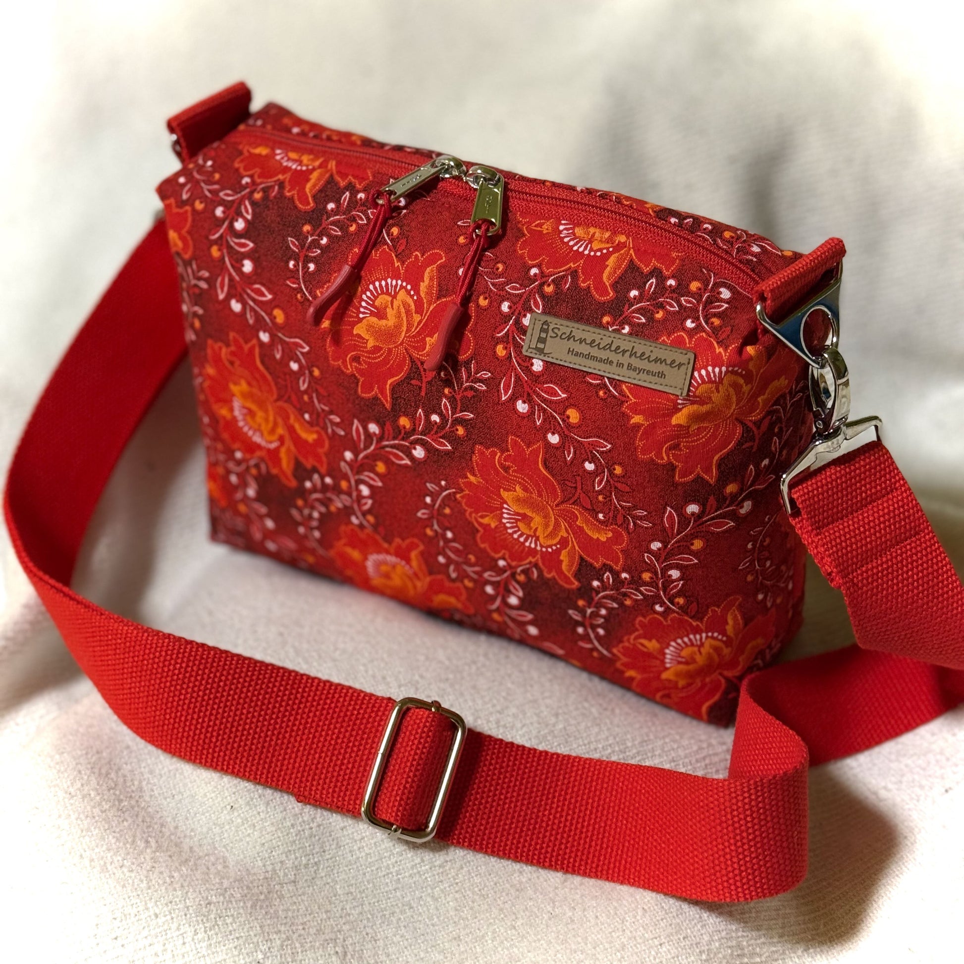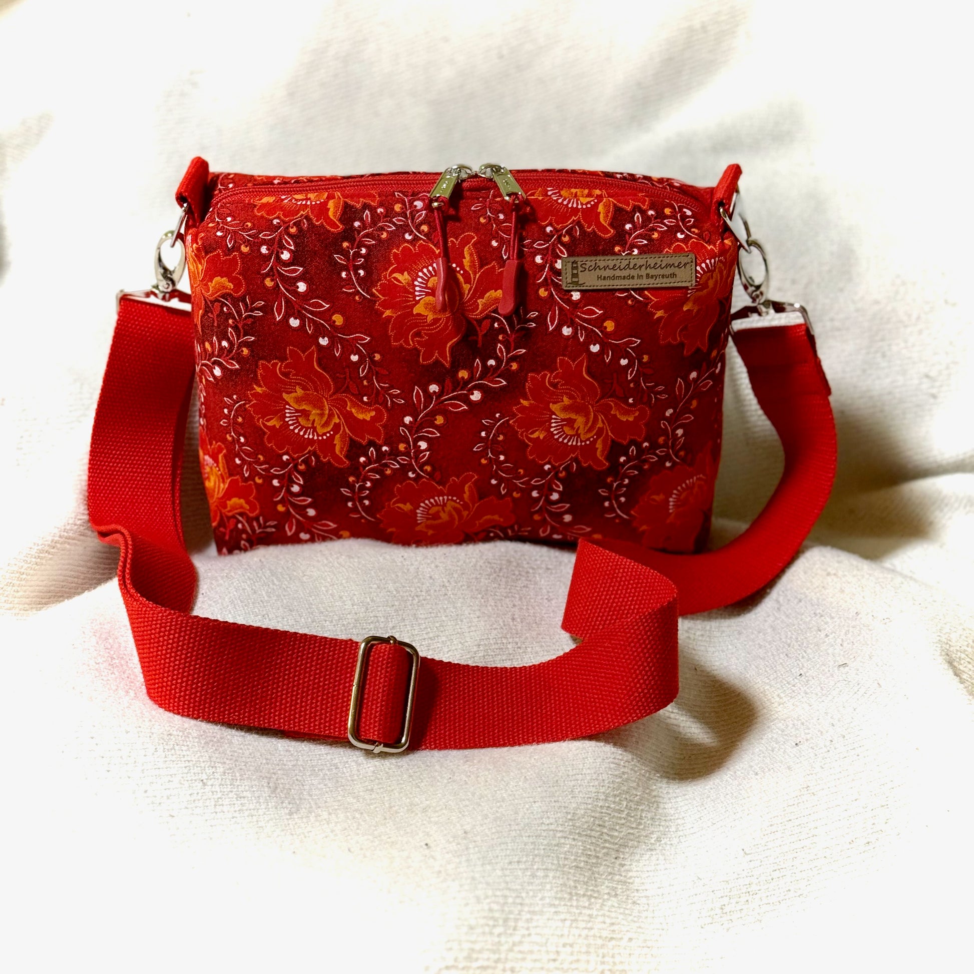 Diese versandbereite Umhängetasche "Leni" in Rot ist ein unkomplizierter Begleiter rund ums Jahr.