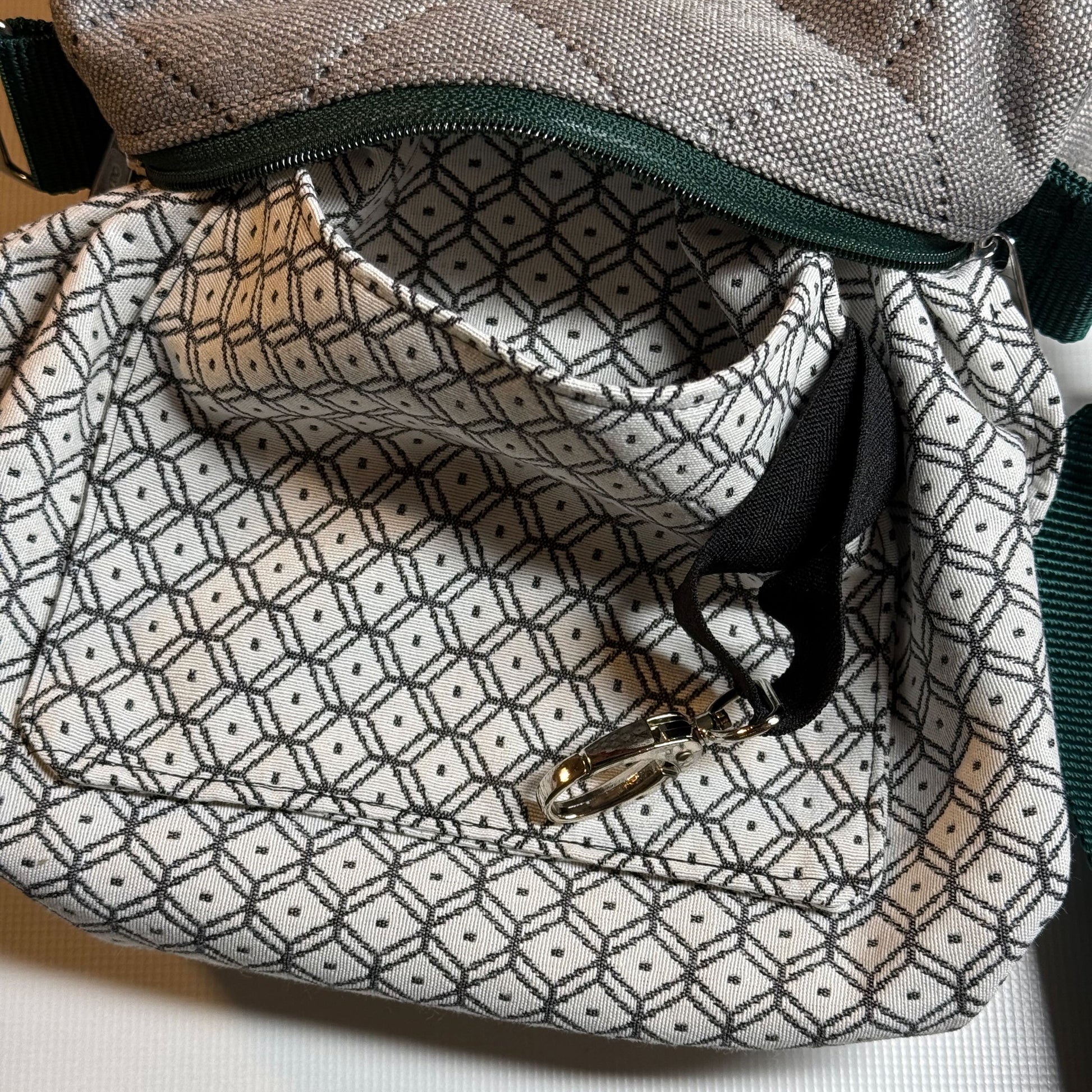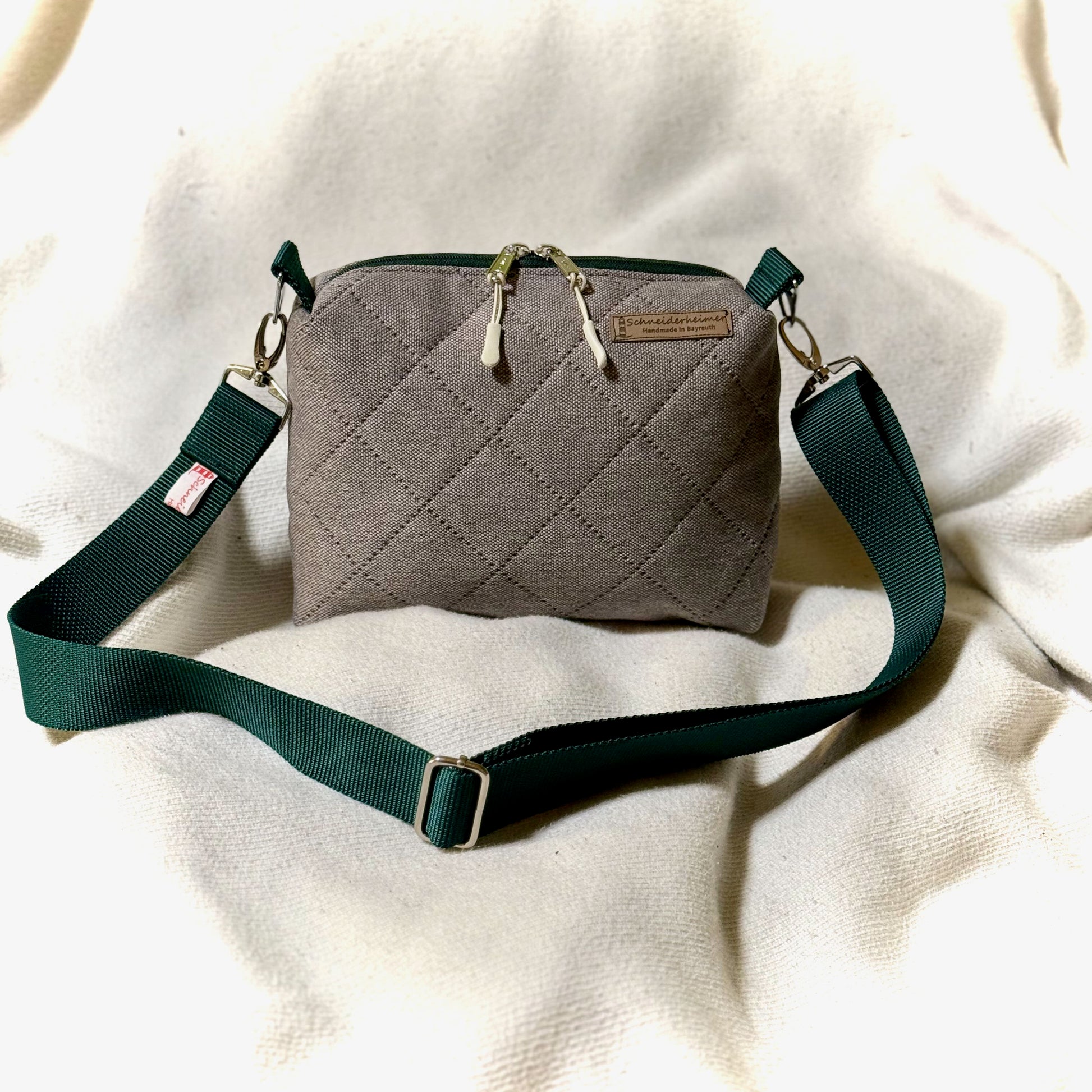 Umhängetasche "Leni" in Stepp - Einzelstück Beige mit Grün