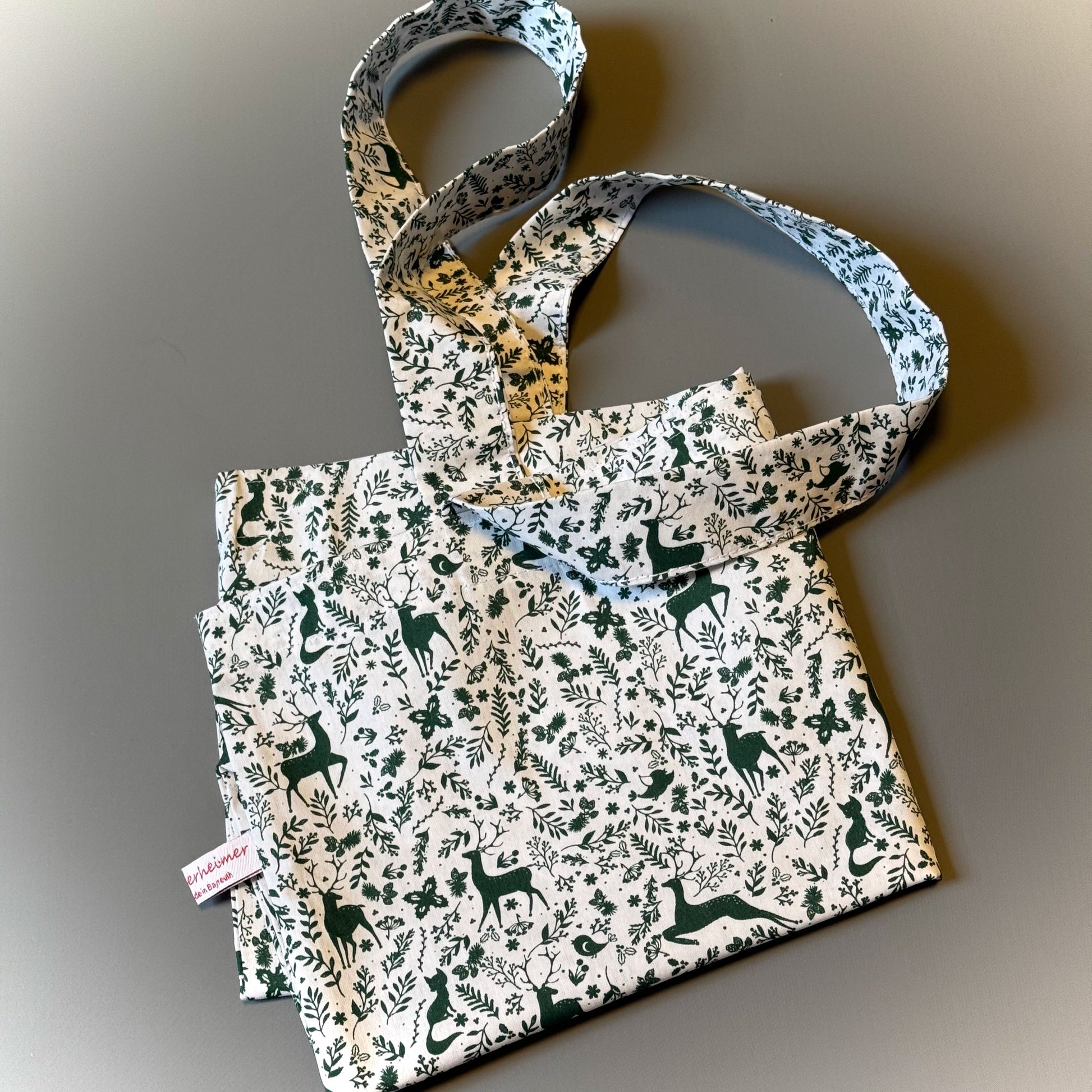 Weihnachtlicher „VielKramBeutel" - Einzelstück Waldtiere Grün